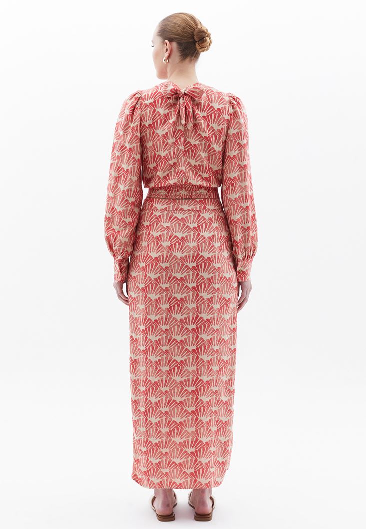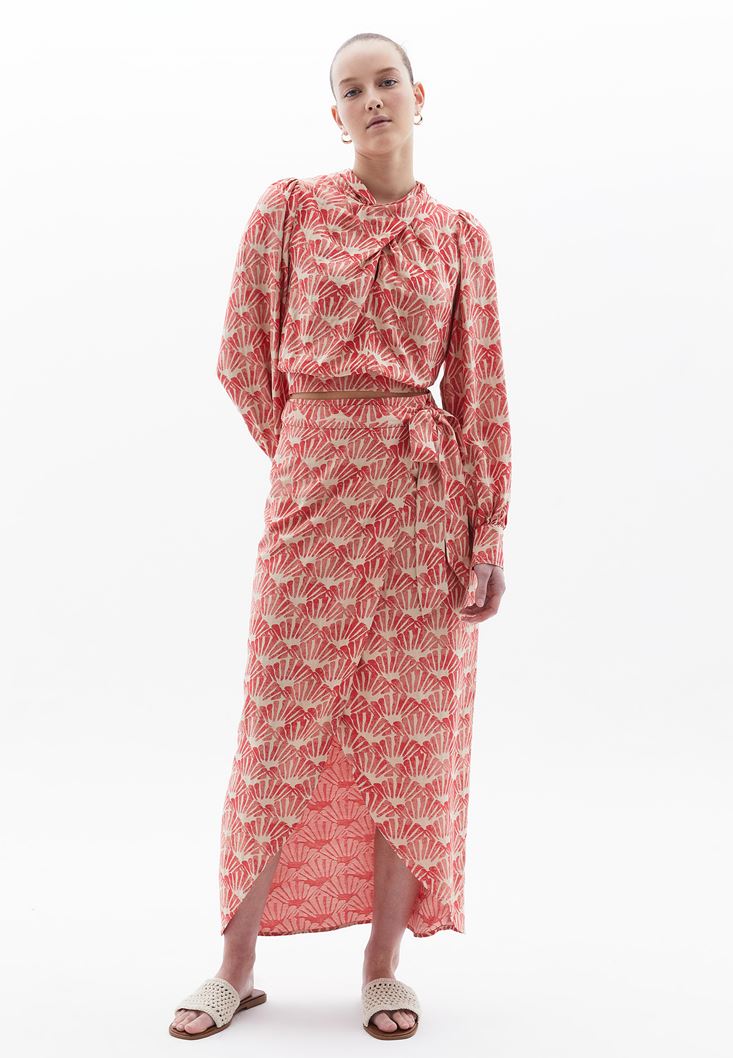%100 viskon içerikli doku, mix desenli, uzun boy, kruvaze kapamalı, beli kuşaklı ve düğmeli, bedenden uzak rahat fit.