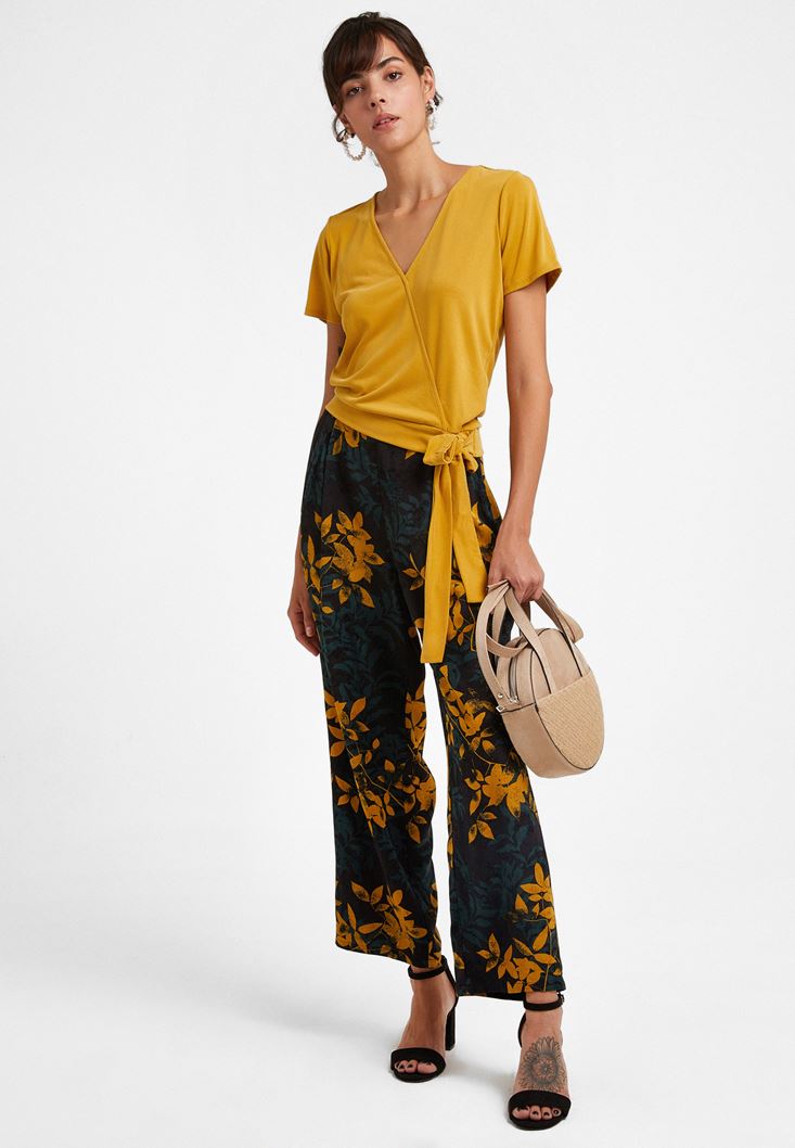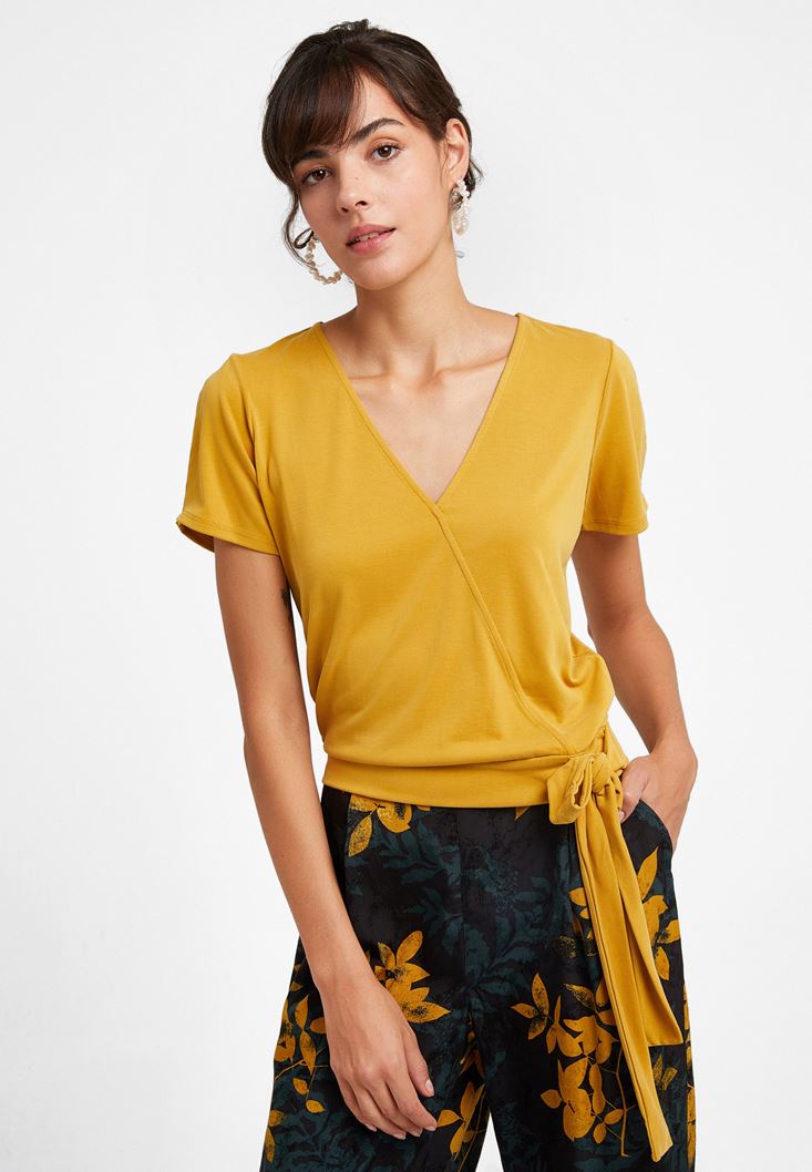 • Bayan Sarı Kruvaze Yaka Bağlamalı Tişört