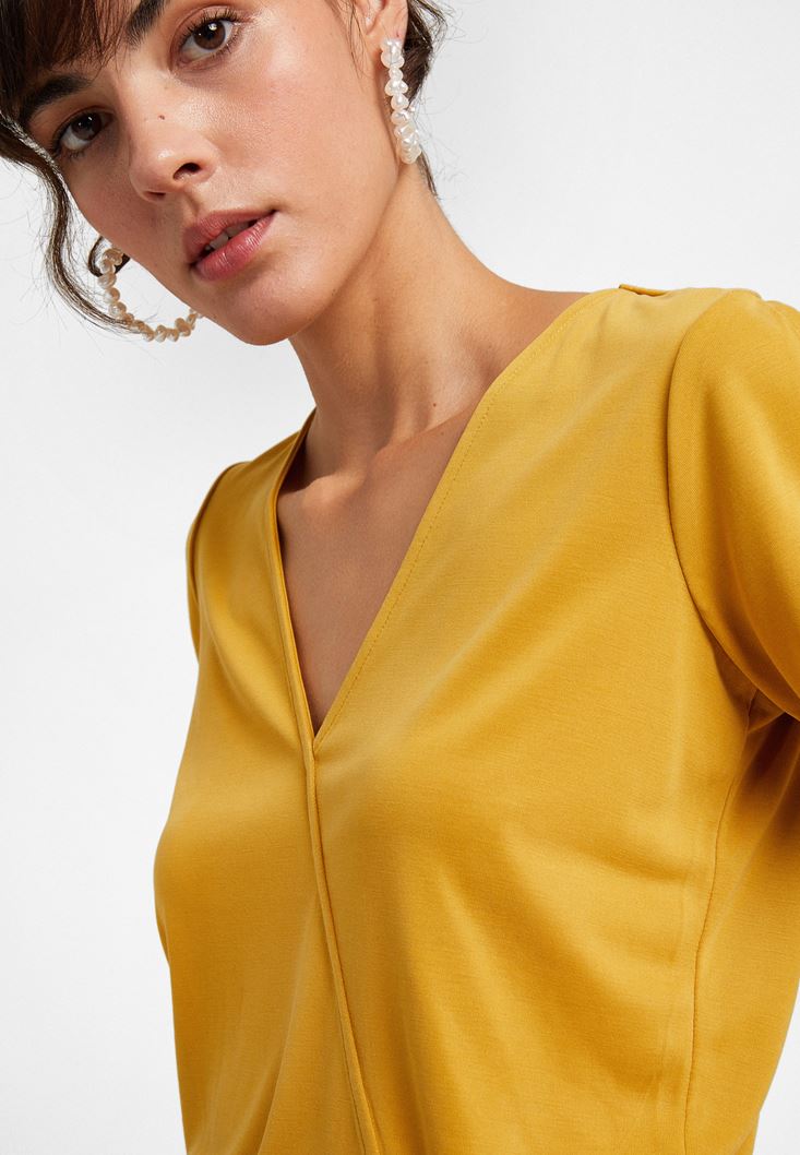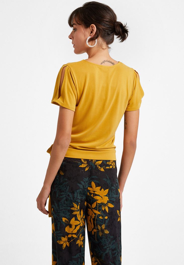 Sarı Kruvaze Yaka Bağlamalı Tişört