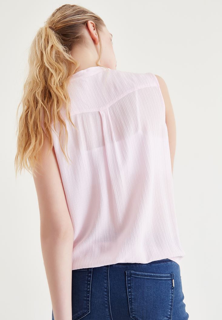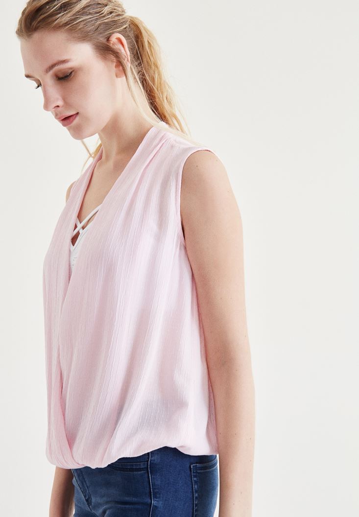 Rahat ve dökümlü modelleri seven genç ve dinamik OXXO kadinlarinin tercihi sifir kollu kruvaze yaka bluz, bu sezonun en çok tercih edilen giyim ürünlerinden biri. Çabasiz siklik saglayarak kisa sürede harika kombinler yaratmaniza olanak saglayan bluz sifir yaka detayi ile zarif ve modern bir hava katacak. Bluzunuzu motifli bir bros ile tutturarak tek basina kullanabileceginiz gibi, ayni zamanda dantel bir büstiyer ya da romantik bir bralet ile birlestirerek dikkat çekici bir tarz elde edebilirsiniz. Skinny kot pantolon modelleri ile sokak modasi havasina uyum saglayan kruvaze bluzu soguk kis günlerinde desenli kimonolar ya da blazer ceketler ile birlikte kombinleyerek çok yönlü kullanabilirsiniz.