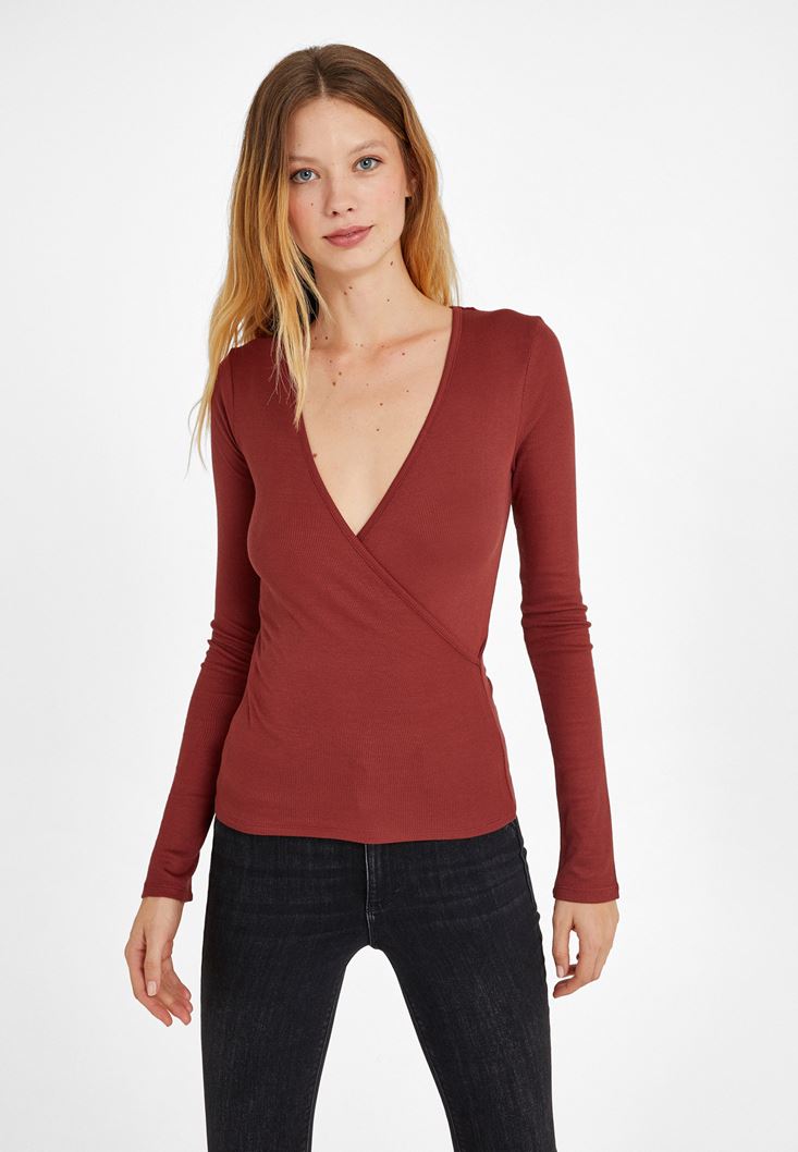 • Bayan Kiremit Kruvaze Yaka Bluz