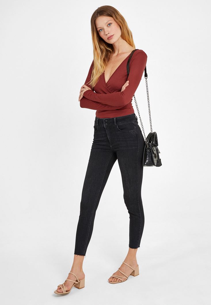 Kruvaze Yaka Bluz modeli, fitilli dokusu ve canlı görünüm veren viskon içerik ile sizlerle buluşuyor. kadın bluz modeli, kruvaze yaka tasarımının kattığı feminen duruş ile uzun kollu bluz zarafetini bir araya getiriyor. Bedeni saran yapısının yumuşaklığına hayran kalınan kadın bluz modeli, kumaşının hafifliği sayesinde sizlere konforlu bir kullanım sunuyor. Kadın bluz modeli ile kadın dar paça pantolon modelleri kullanarak, şıklığı yakaladığınız kombinler yapabilirsiniz. kadın kolye modelleri ile daha da hareketlendireceğiniz kadın kruvaze bluz ile stilinize zarif bir duruş katabilirsiniz. Oxxo’nun her sezon beğeninize sunulan kadın şık bluz modelleri ile gittiğiniz her ortamda merak edilen ve beğenilen tarzınızı özgürce yansıtabilirsiniz.