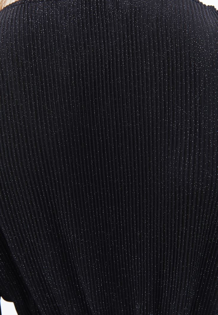 • Bayan Siyah Kruvaze Yaka Crop Bluz