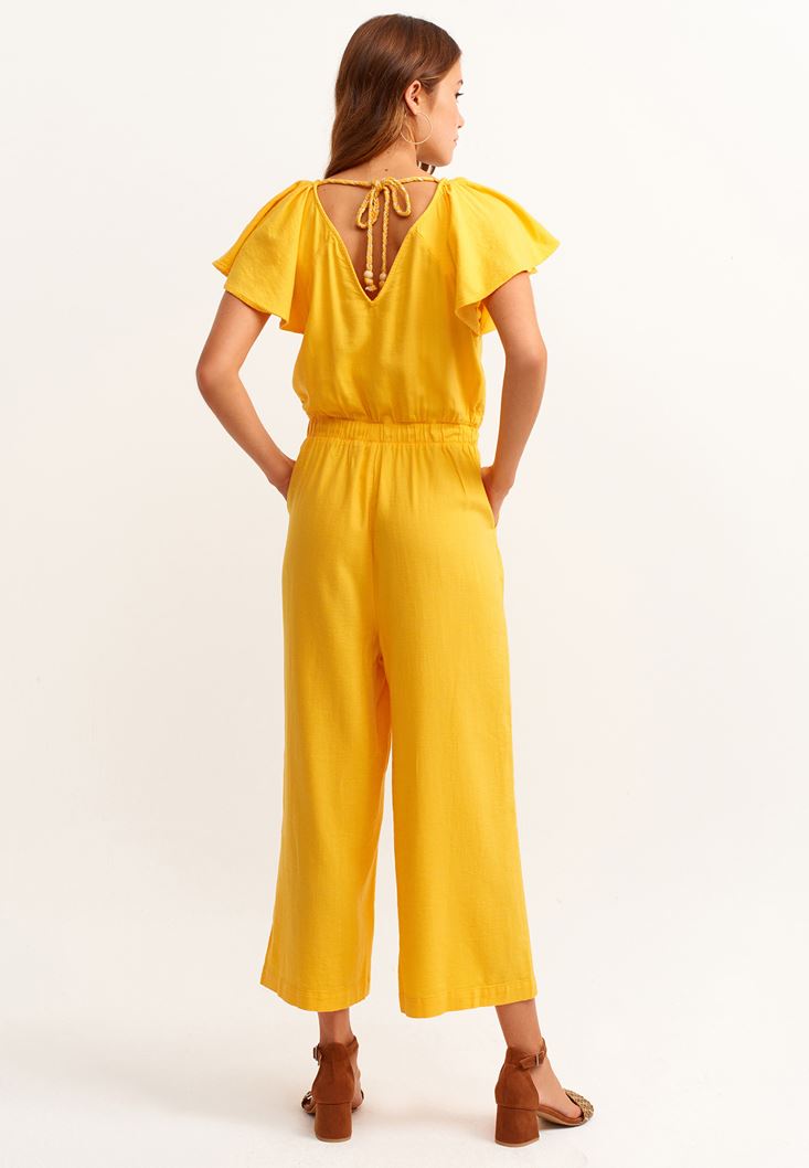 • Bayan Sarı Kruvaze Yaka Culotte Tulum