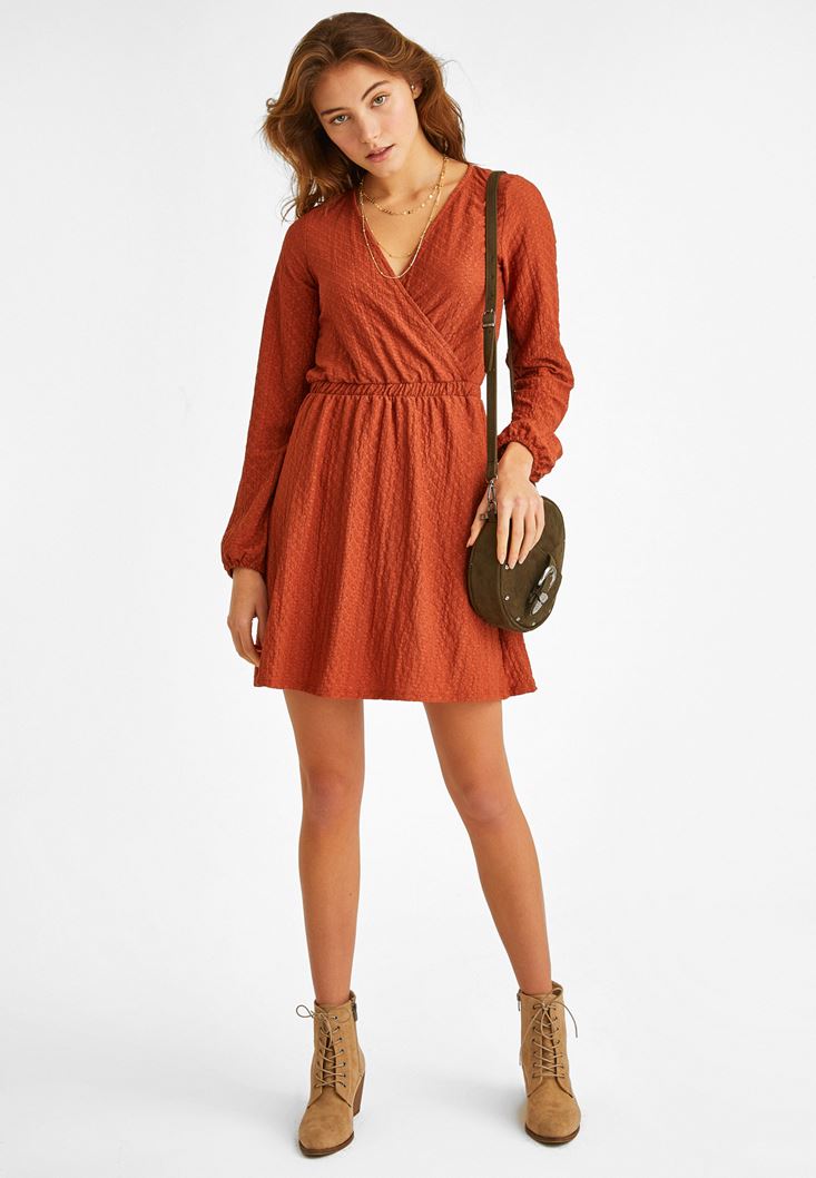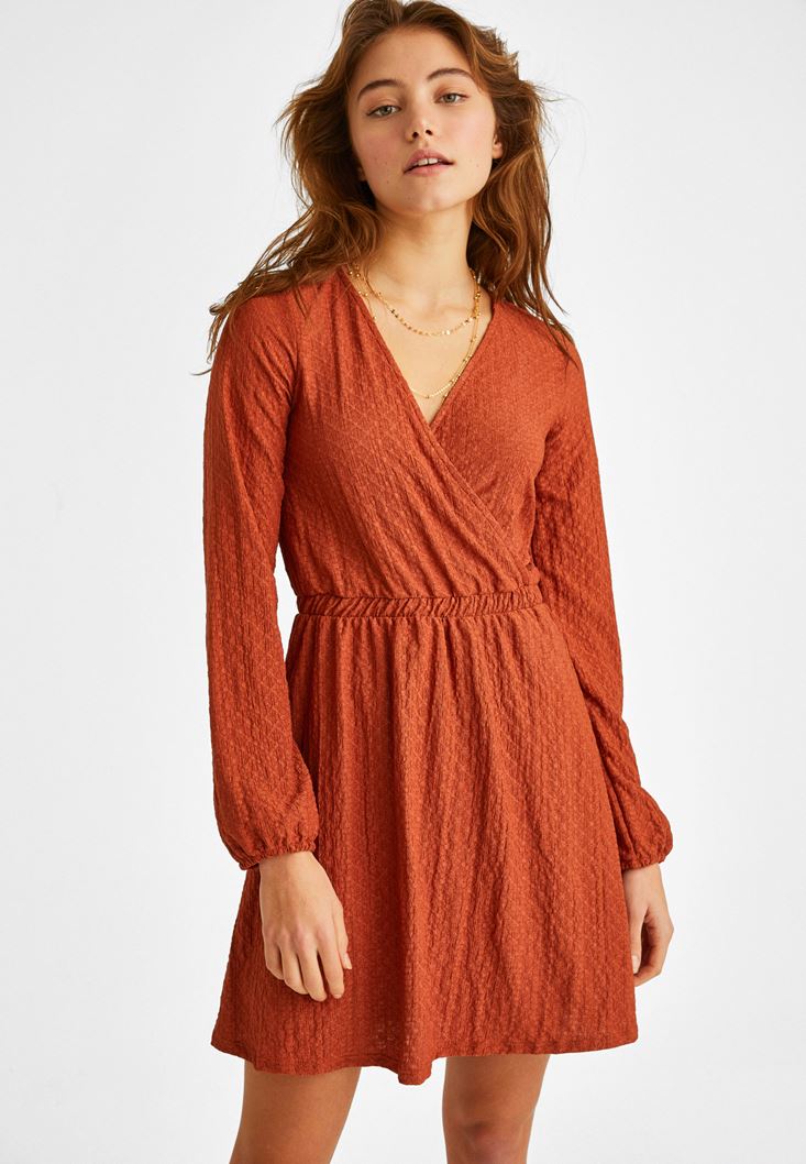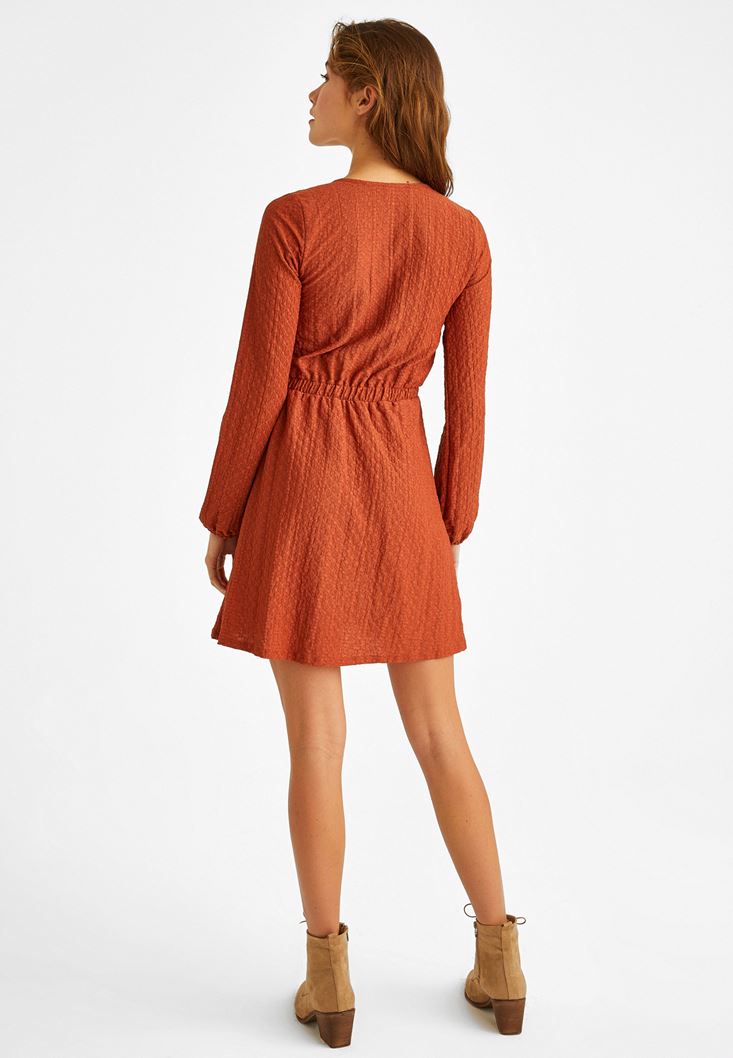Kruvaze Yaka Mini Elbise modeli, dokulu kumaşı ve esnek yapısı ile yeni sezonda sizlerle buluşuyor. Kadın elbise modeli, kısa görünümü ve kruvaze yaka detayı ile oluşan çekicilik eşliğinde sizlere sunuluyor. Kısa elbise modeli, uzun kol kesimi ve hafif bol kalıbı ile kombinlerinizi canlandırmak için ideal bir seçenek oluyor. Kadın elbise modelleri ile uzun trençkotlar veya hırkalar tercih ederek fark yaratan feminen görünümlere ulaşabilirsiniz. Uzun çizmelerle veya topuklu ayakkabılarla kullanabileceğiniz kısa elbise modeli ile zarifliğinizi vurgulayabilirsiniz. Oxxo'nun dikkat çeken ayrıntılarla çekiciliğe davet eden kadın elbise modelleri ile stilinizi yönlendirebilirsiniz.