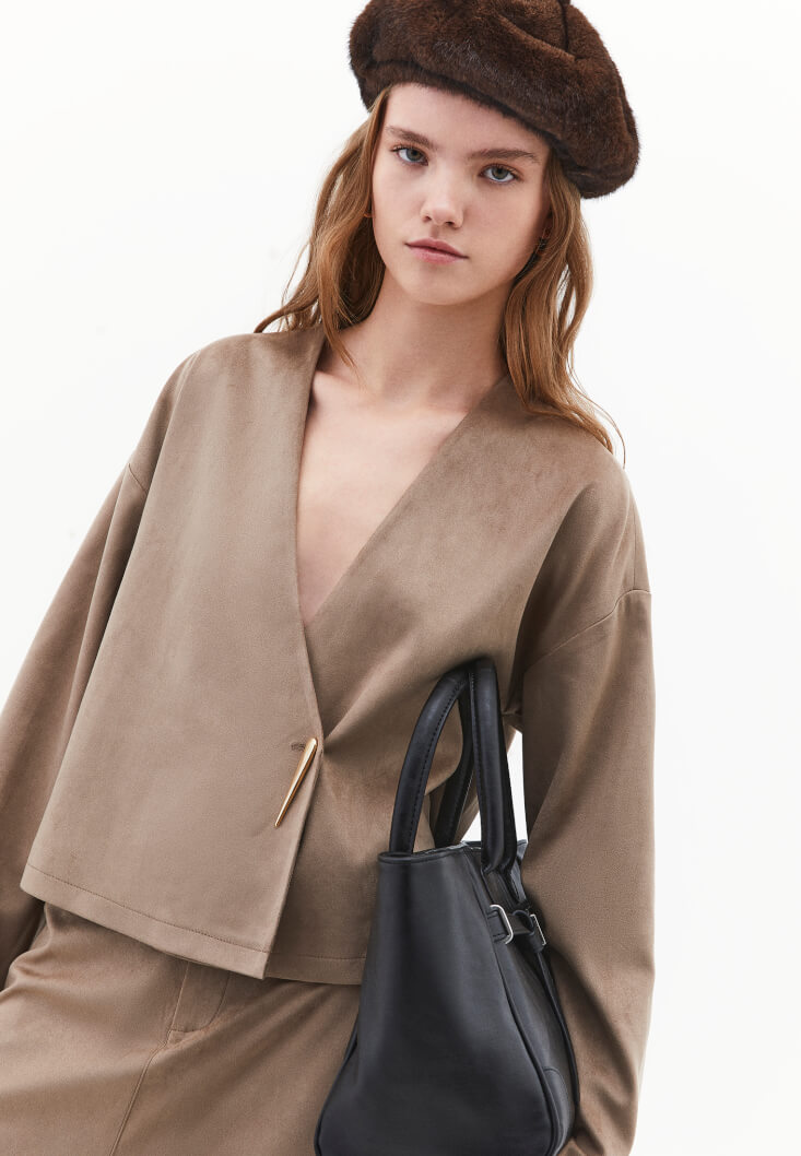Şehirli bir ofis şıklığı için kumaş pantolonlar ve ipek bluzlarla birleştirebilir; hafta sonu planlarınızda ise yüksek bel denim pantolonlar ve botlarla "cool" bir görünüm yakalayabilirsiniz. Daha feminen bir duruş için yırtmaçlı süet midi eteklerle bir araya getirerek dokusal bütünlüğün tadını çıkarın. Minimal gümüş takılar ve askılı omuz çantalarıyla stilinizi eksiksiz bir hikayeye dönüştürün. Hem profesyonel hayatın ciddiyetine hem de şehir hayatının dinamizmine uyumlu, ikonik bir parça.