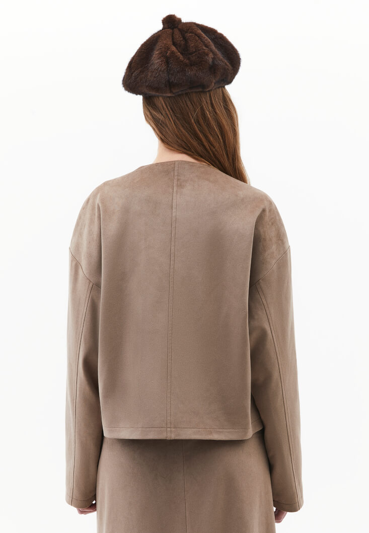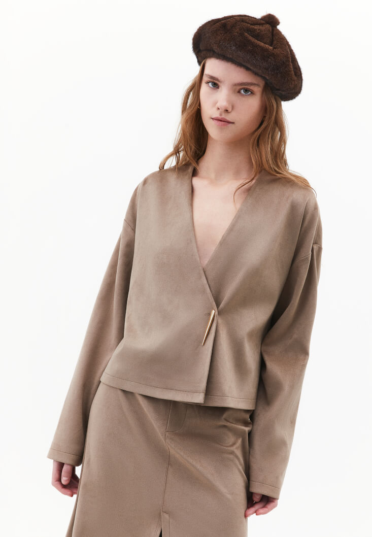 • Bayan Kum Beji Kruvaze Yaka Süet Ceket