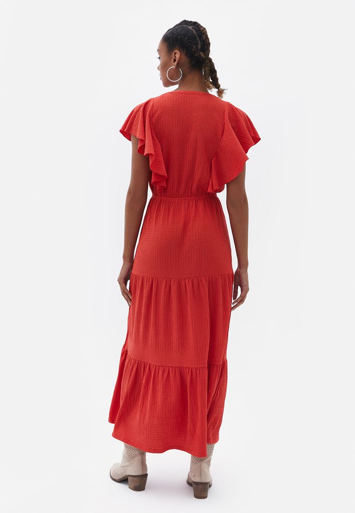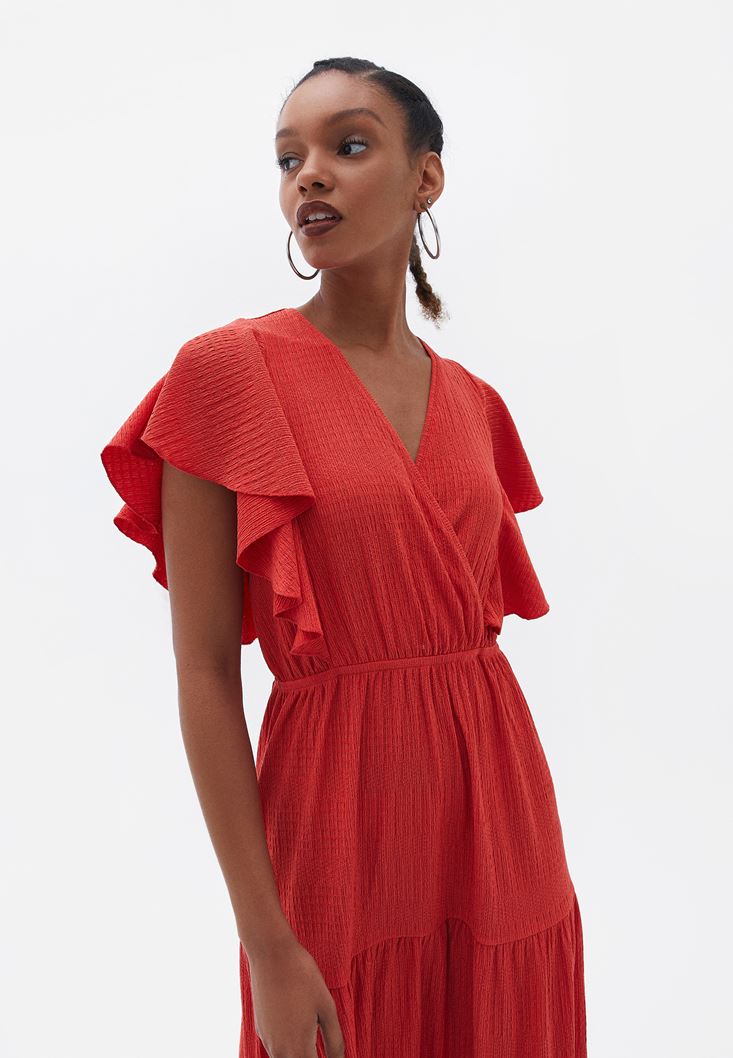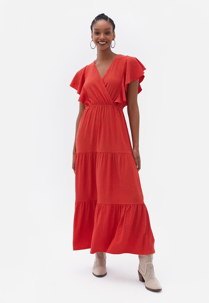 • Bayan Kırmızı Kruvaze Yaka Uzun Elbise