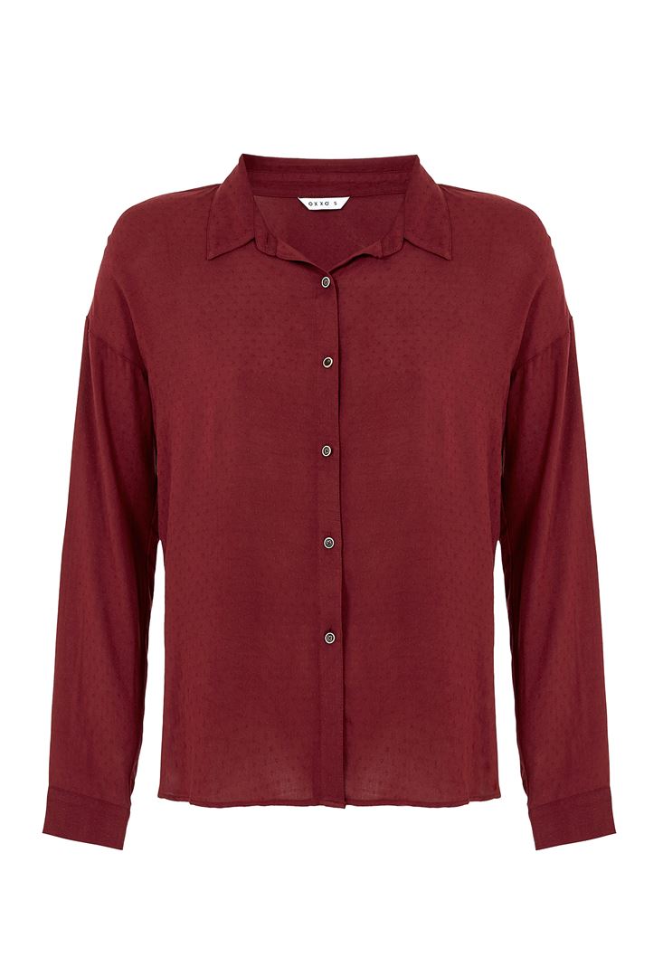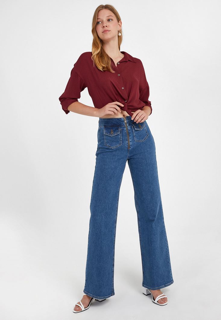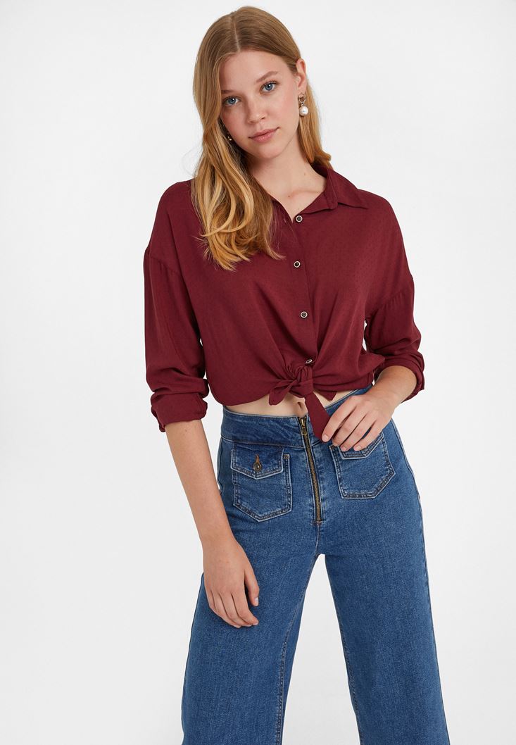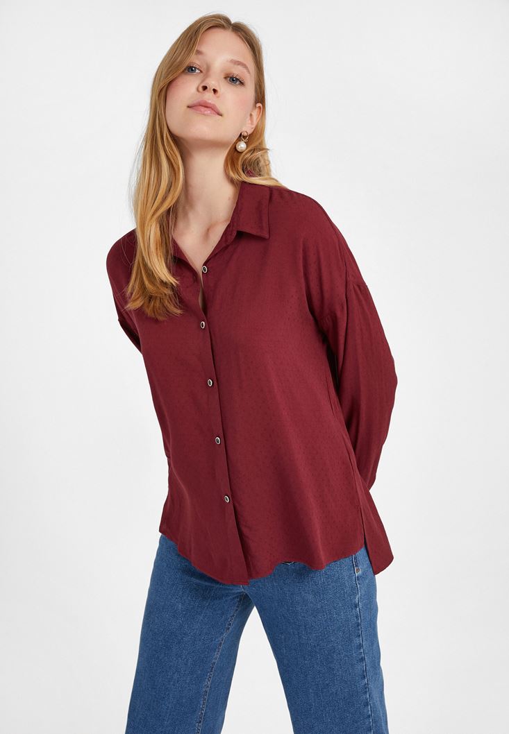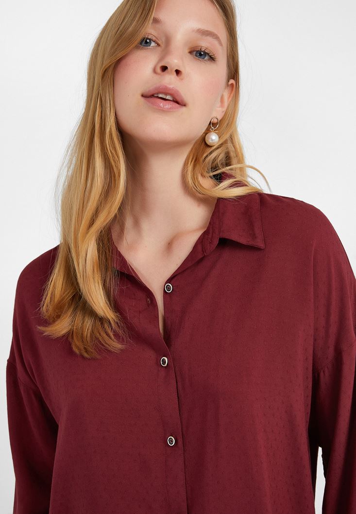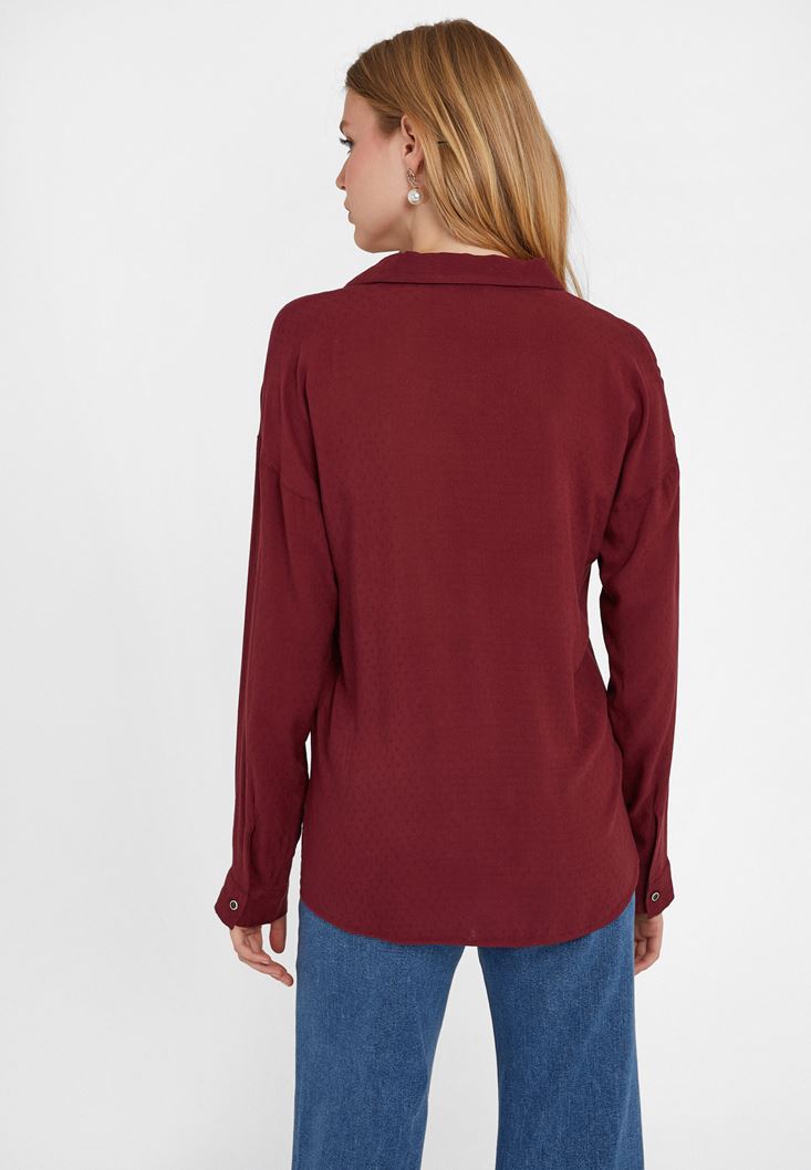 • Bayan Bordo Kumaş Detaylı Viskon Gömlek