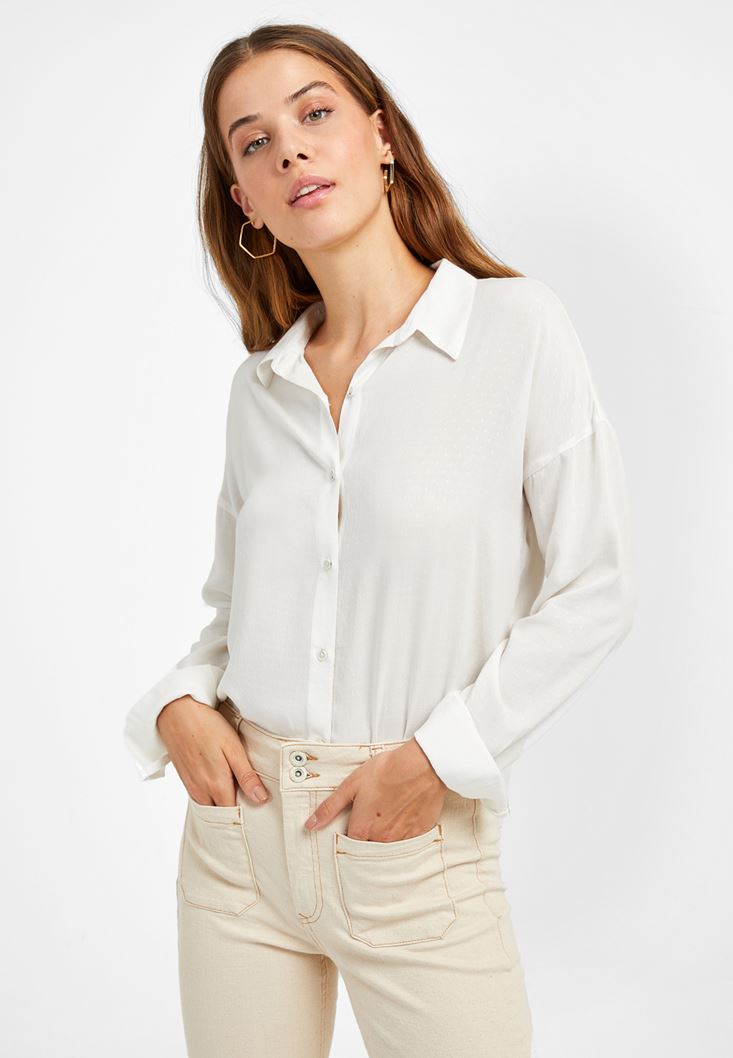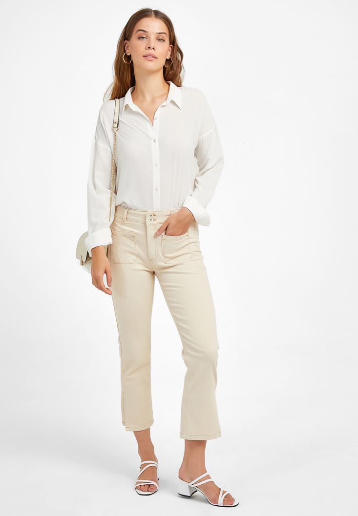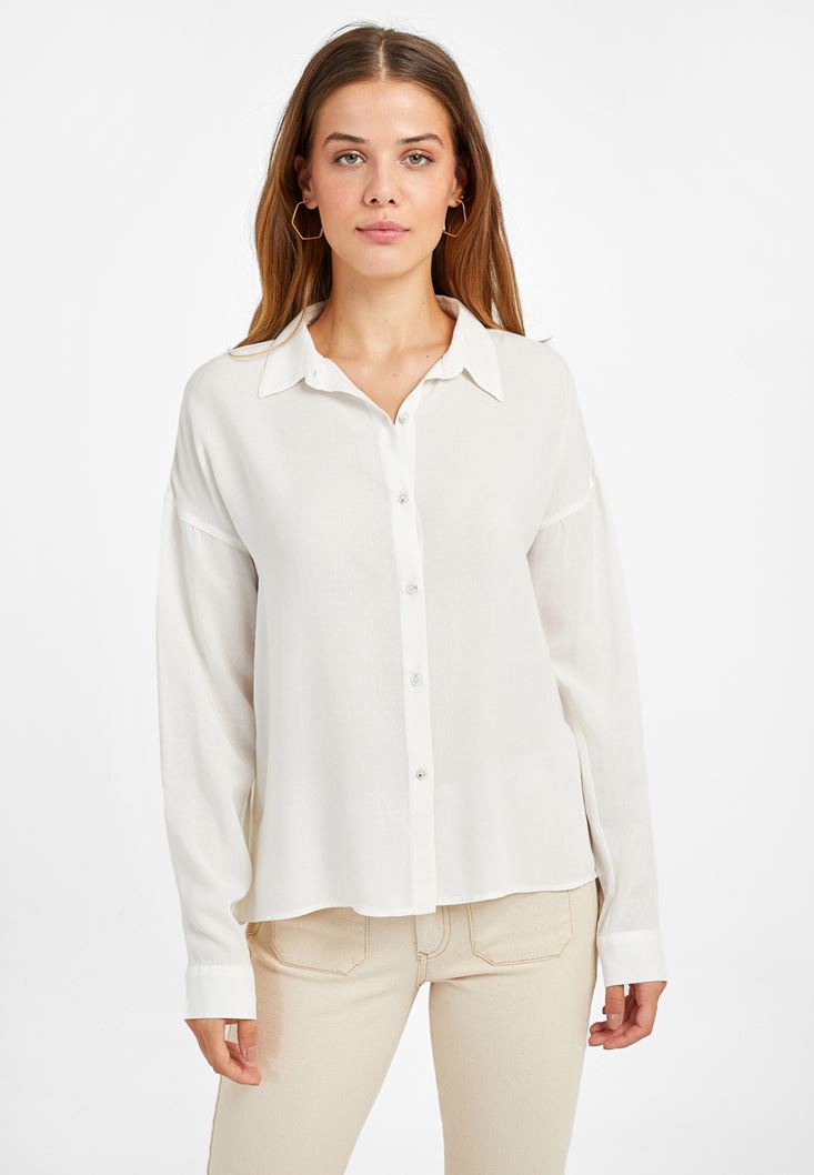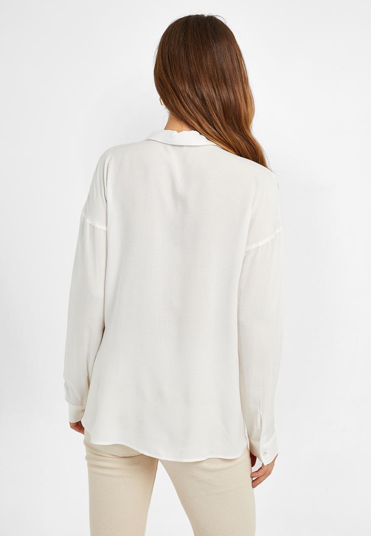 • Bayan Krem Kumaş Detaylı Viskon Gömlek