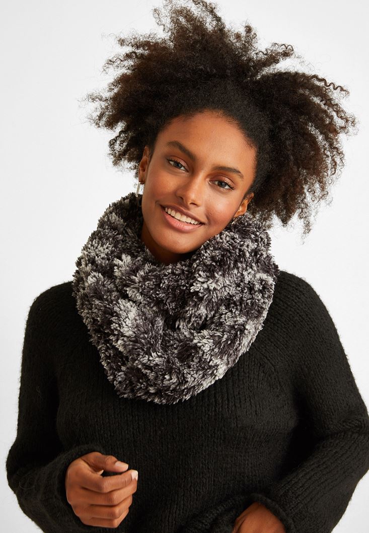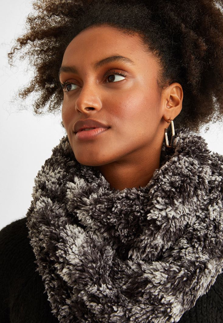 • Bayan Siyah Kürk Detaylı Boyunluk
