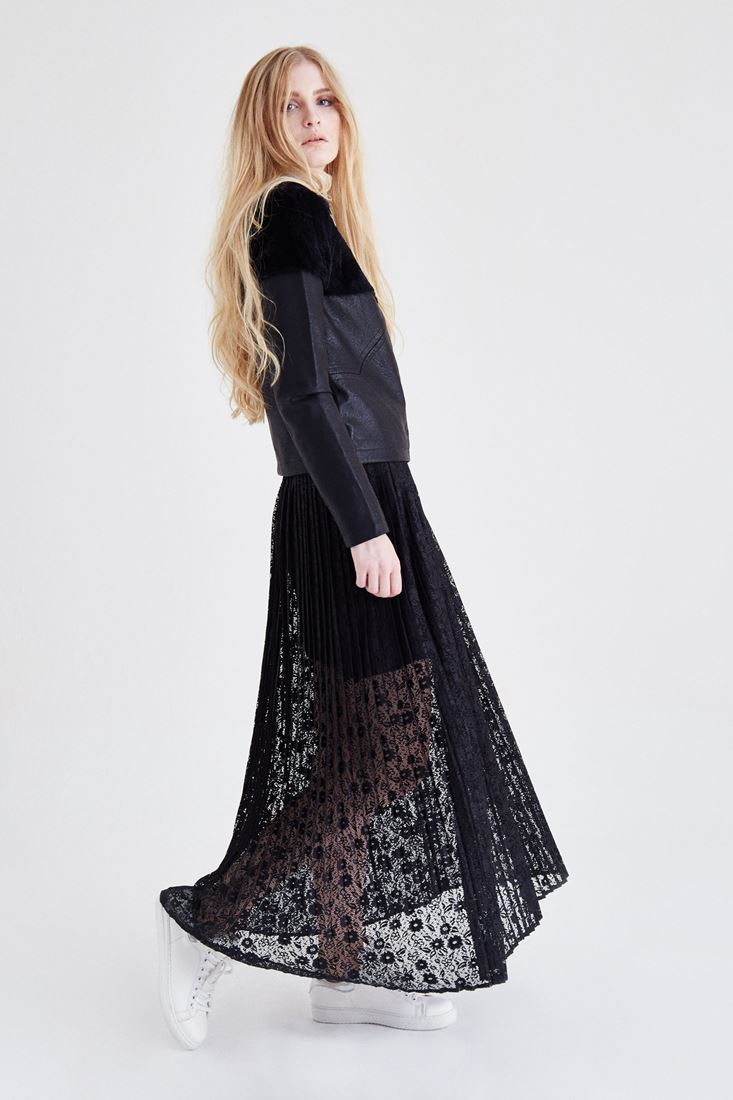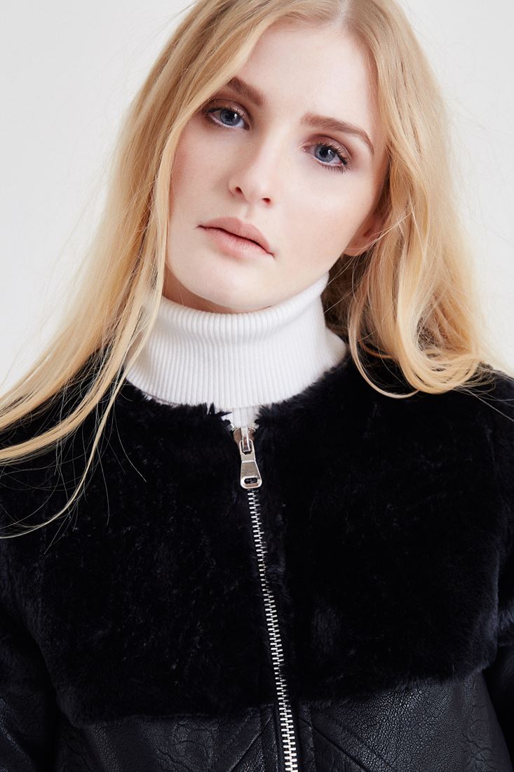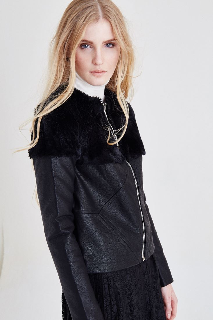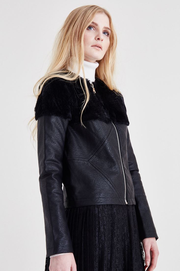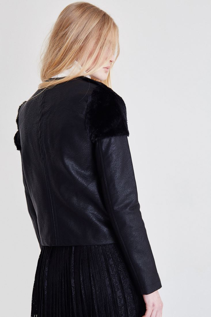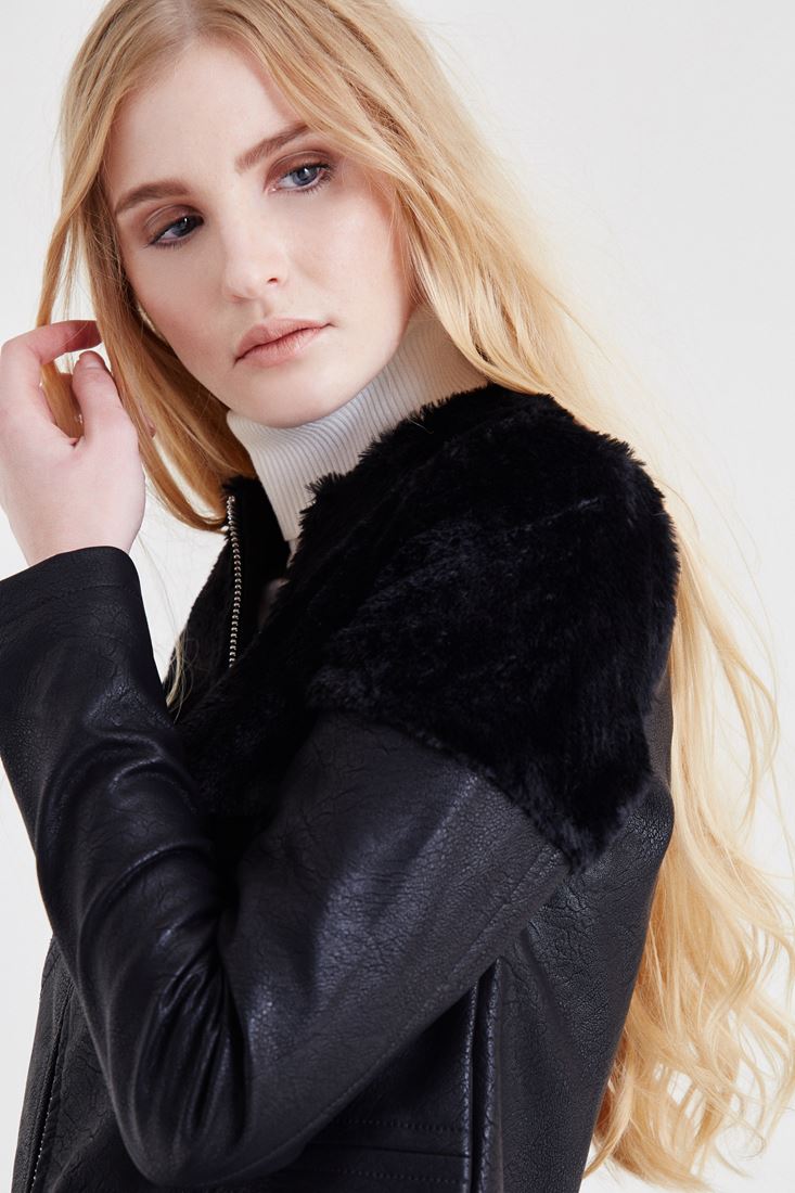 Siyah Kürk Detaylı Deri Ceket