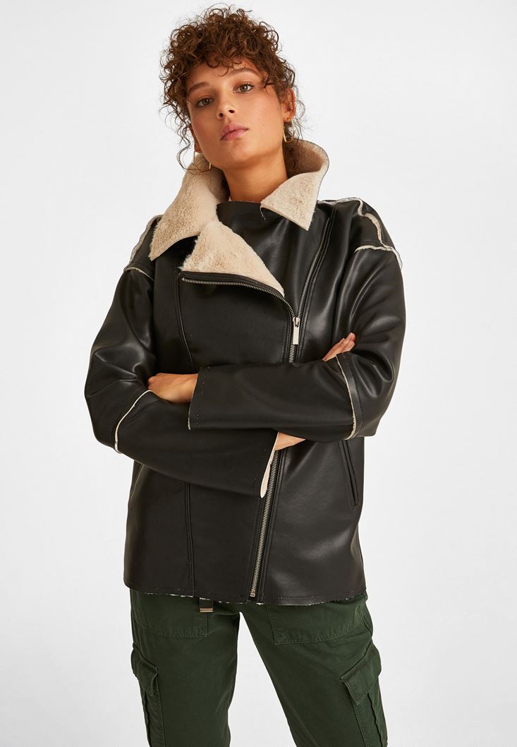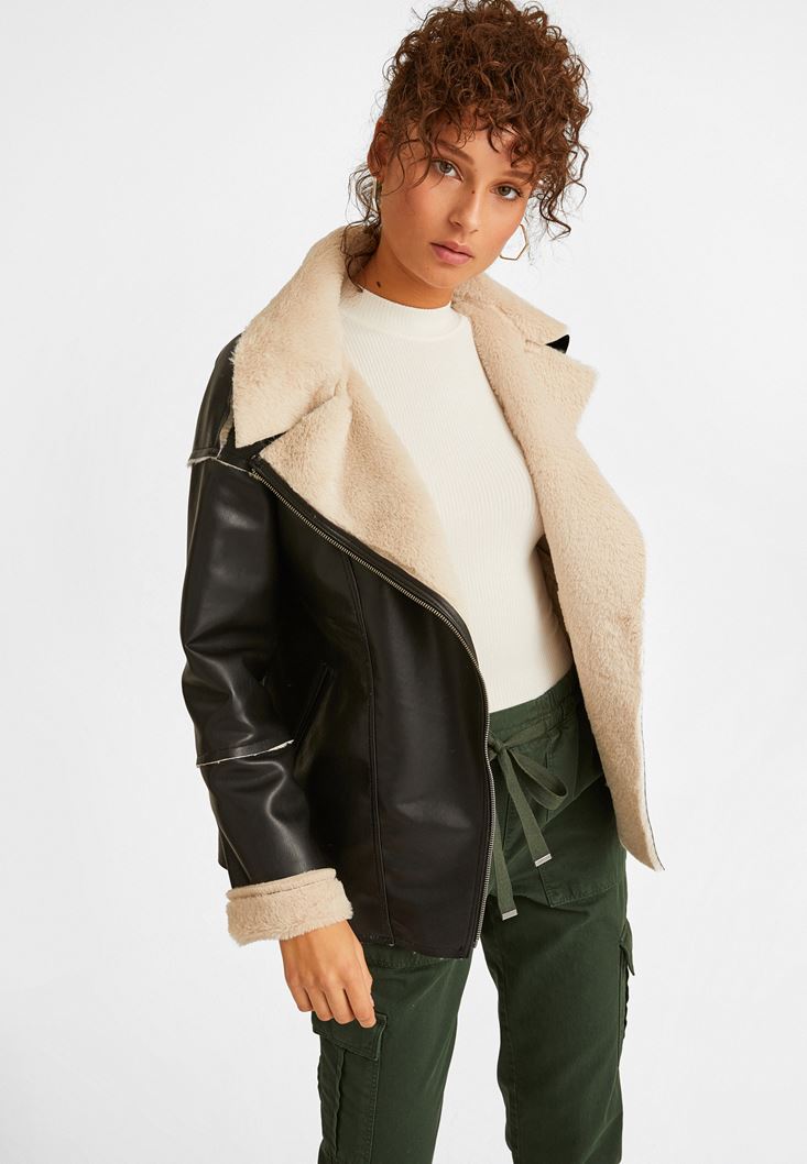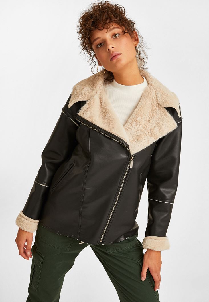Oxxo Kürk Detaylı Deri Ceket 210376147