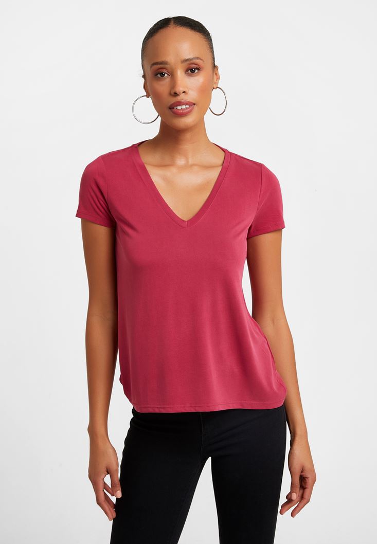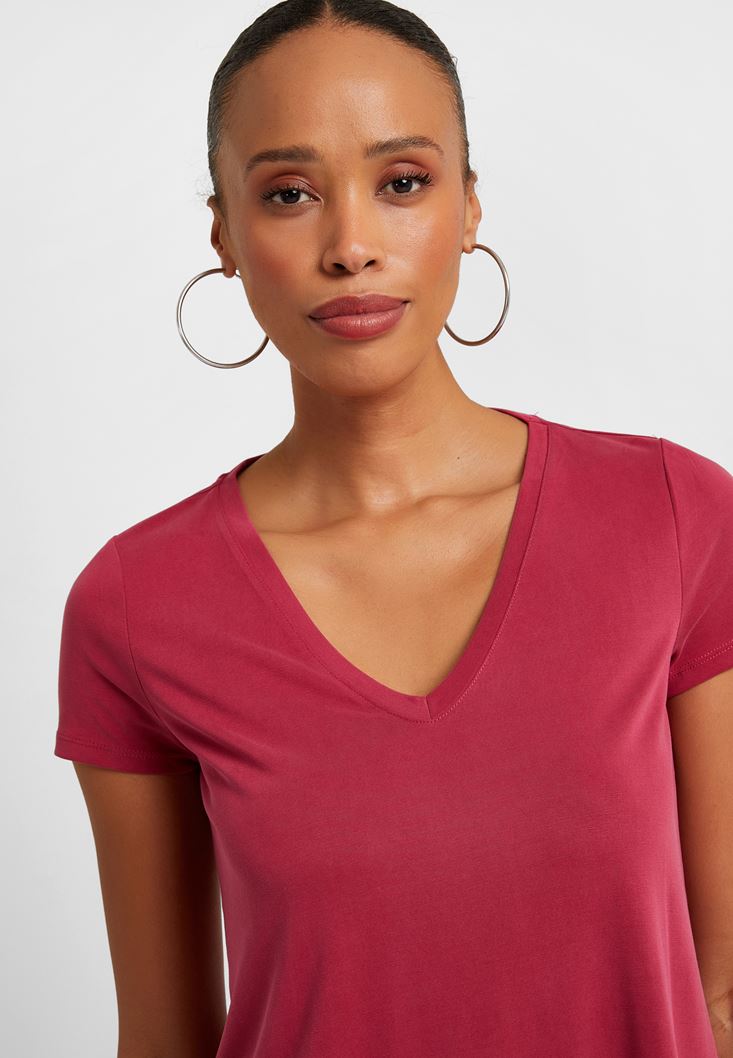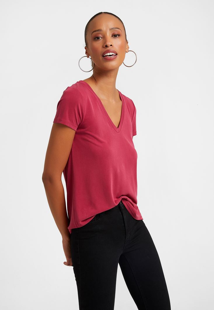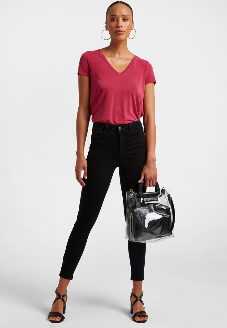 V Yaka Tişört ve Yüksek Bel Mom Jean Kombini