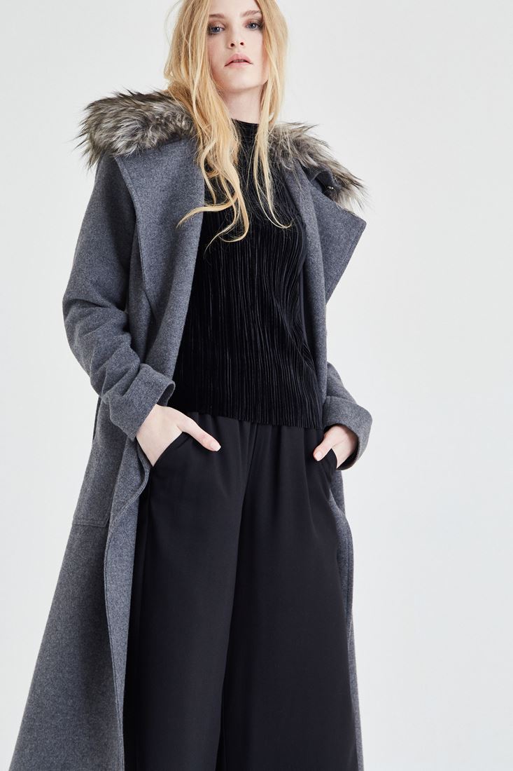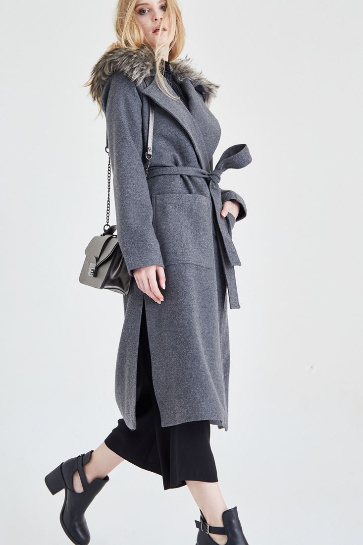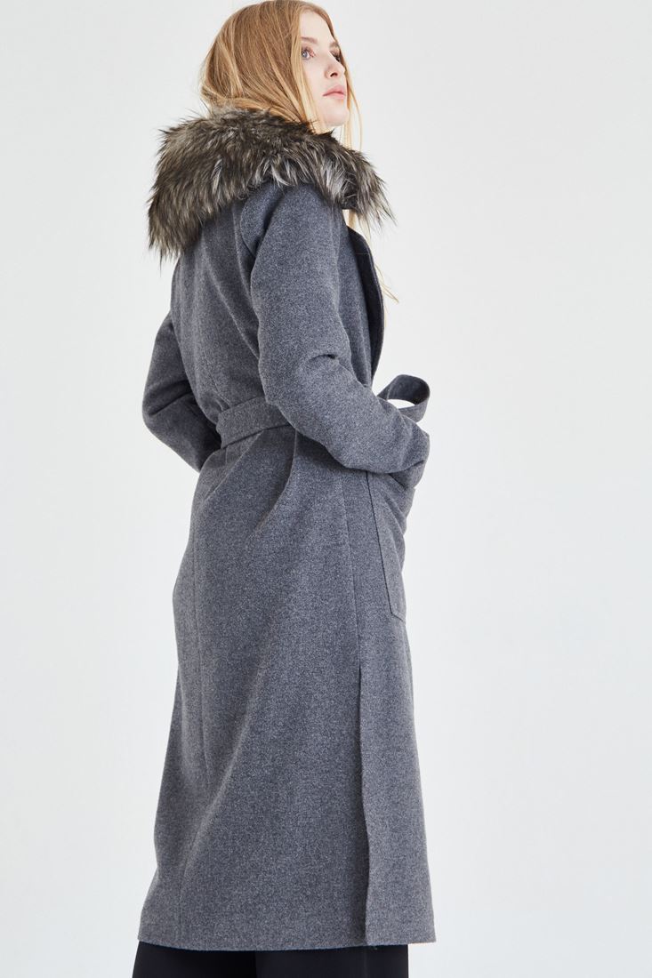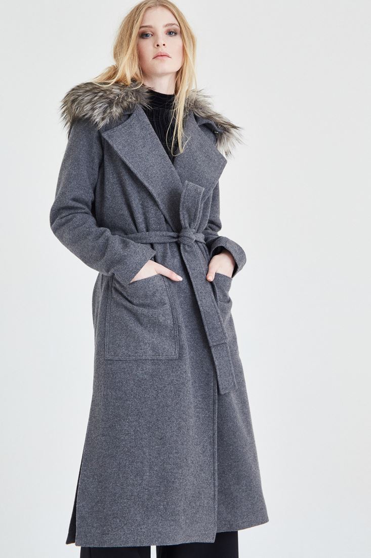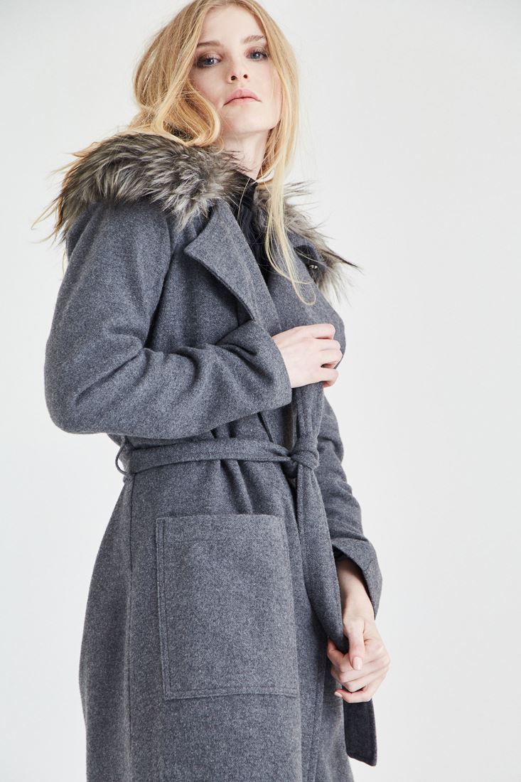 Gri Kürk Yaka Detaylı Kaban