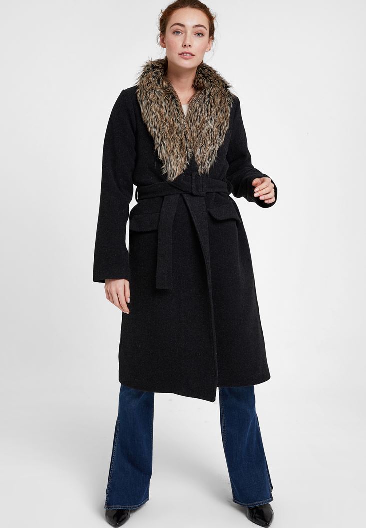 Oxxo Kürk Yakalı Kemerli Uzun Kaban 208830147