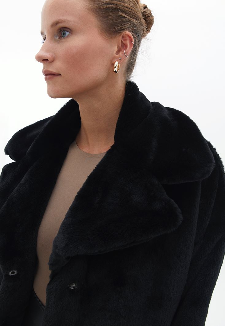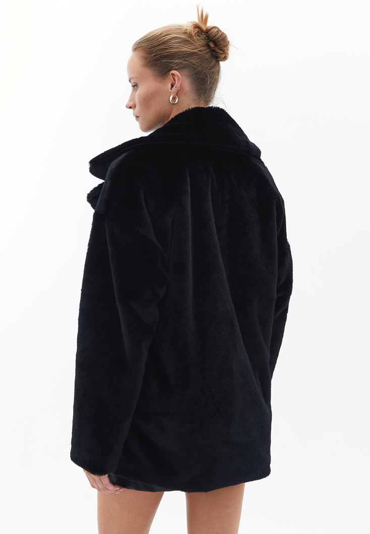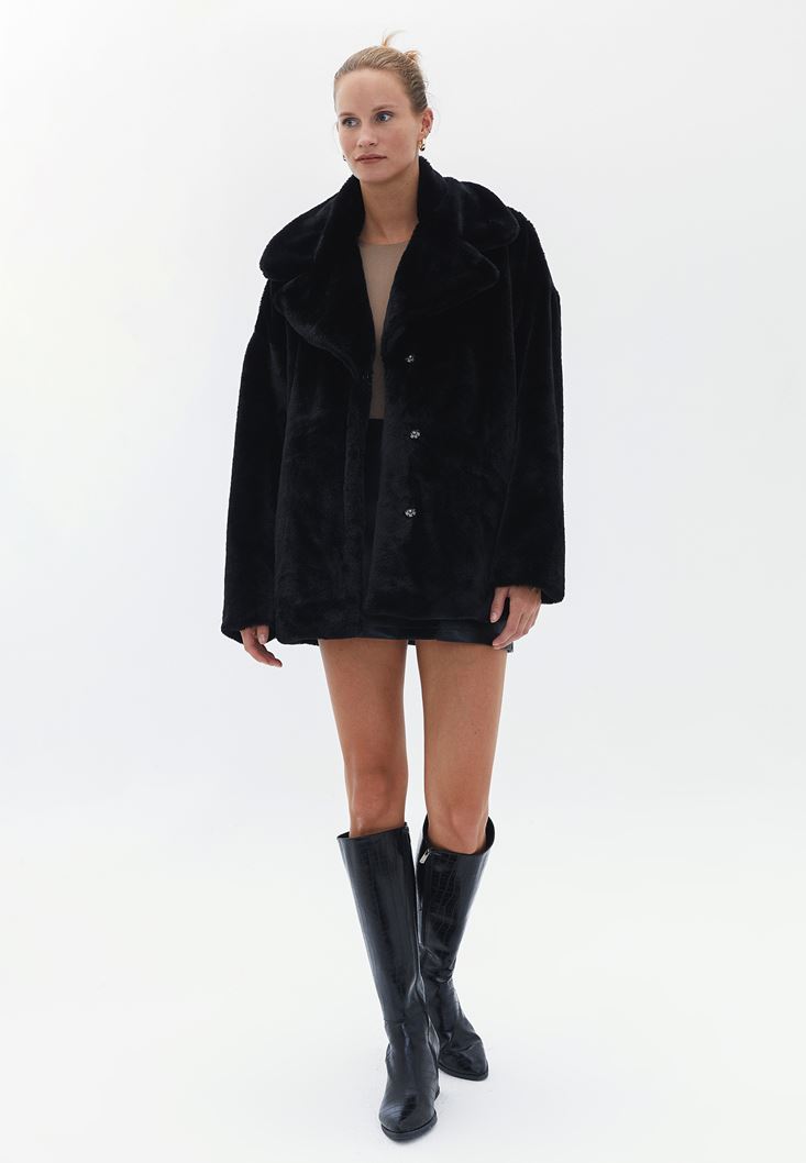 Siyah Kürklü Oversize Mont