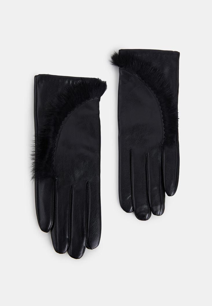 Siyah Kürklü Suni Deri Eldiven