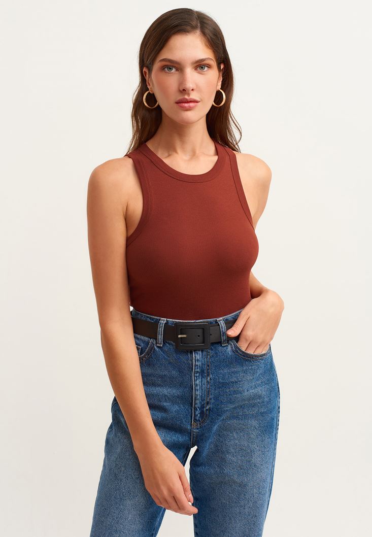 Kahverengi Kurtarıcı Halter Yaka Atlet
