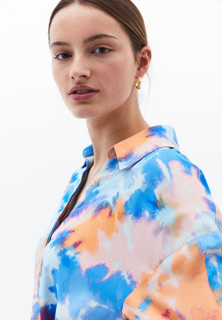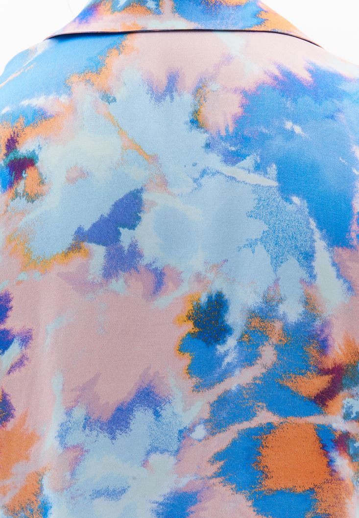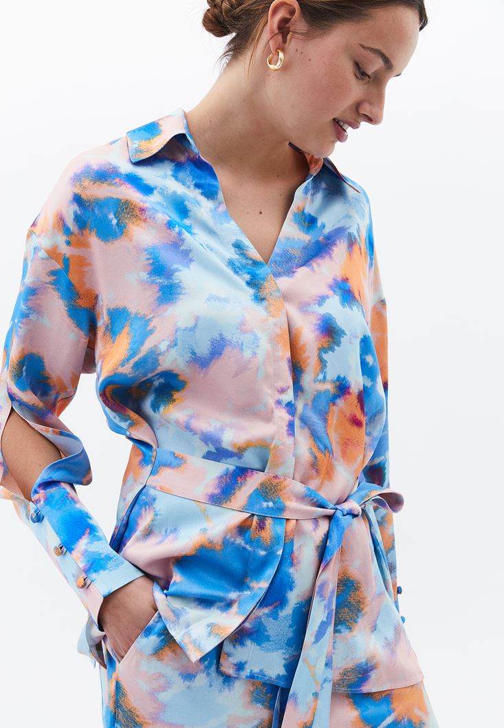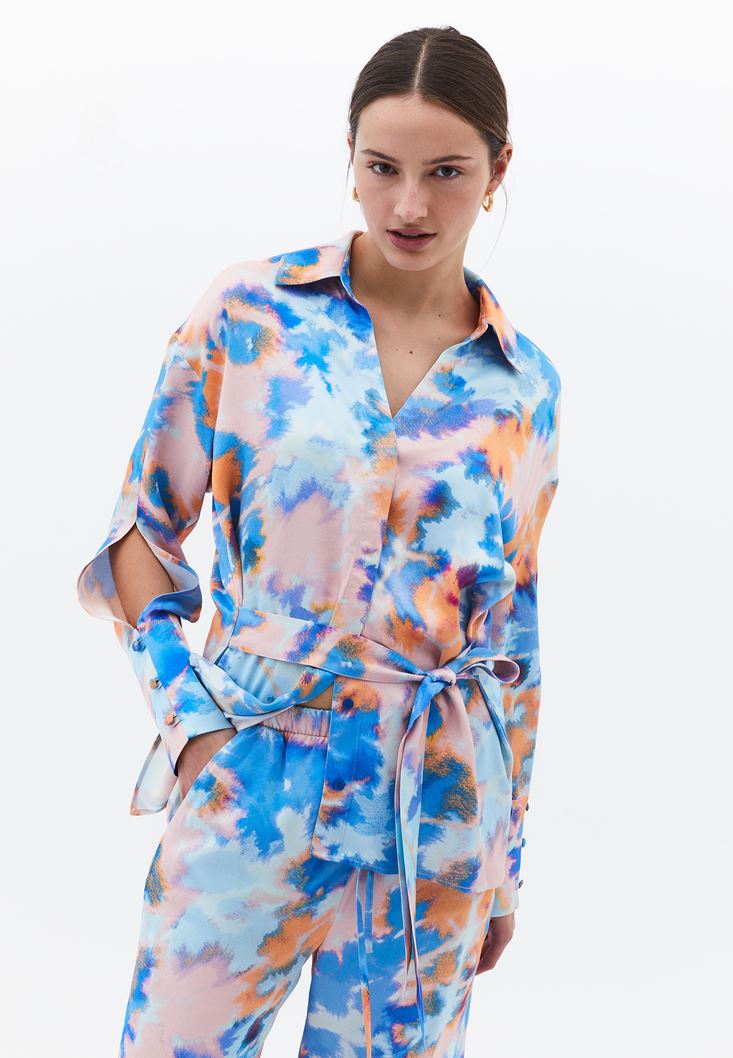 Çok Renkli Kuşak Detaylı Saten Gömlek