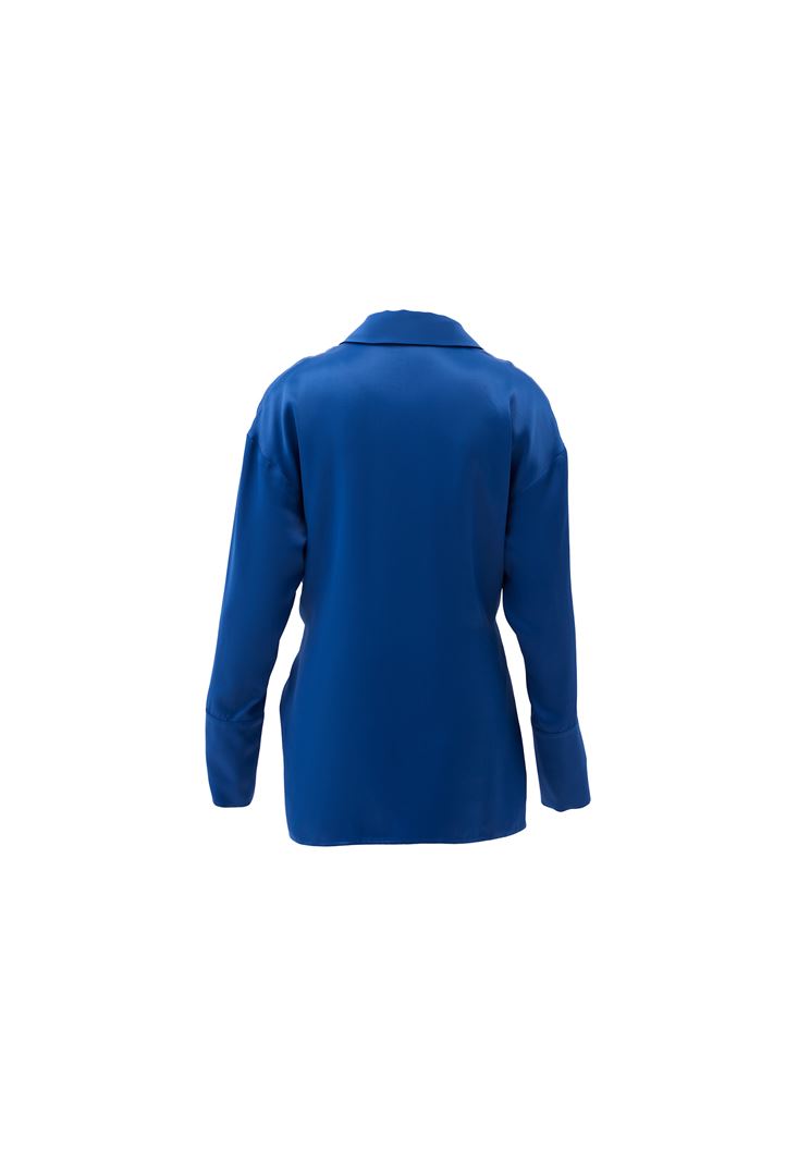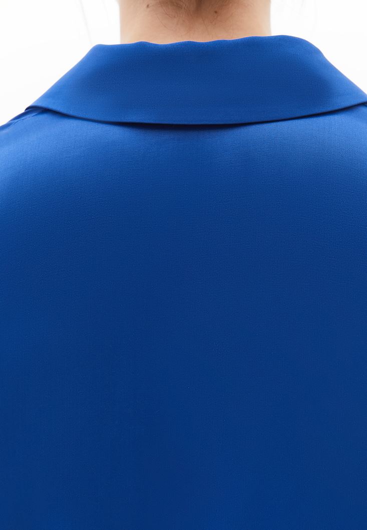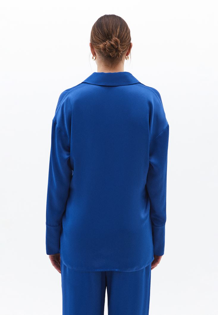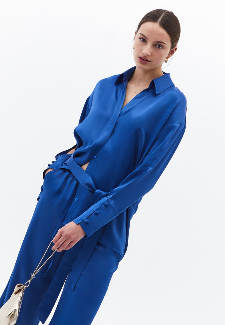 Mavi Kuşak Detaylı Saten Gömlek