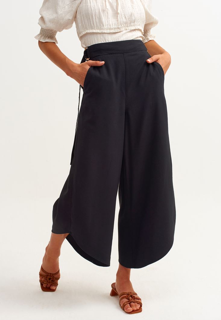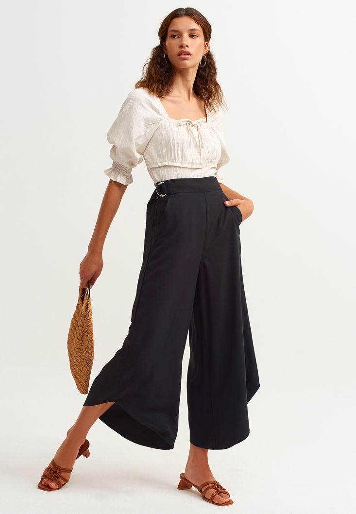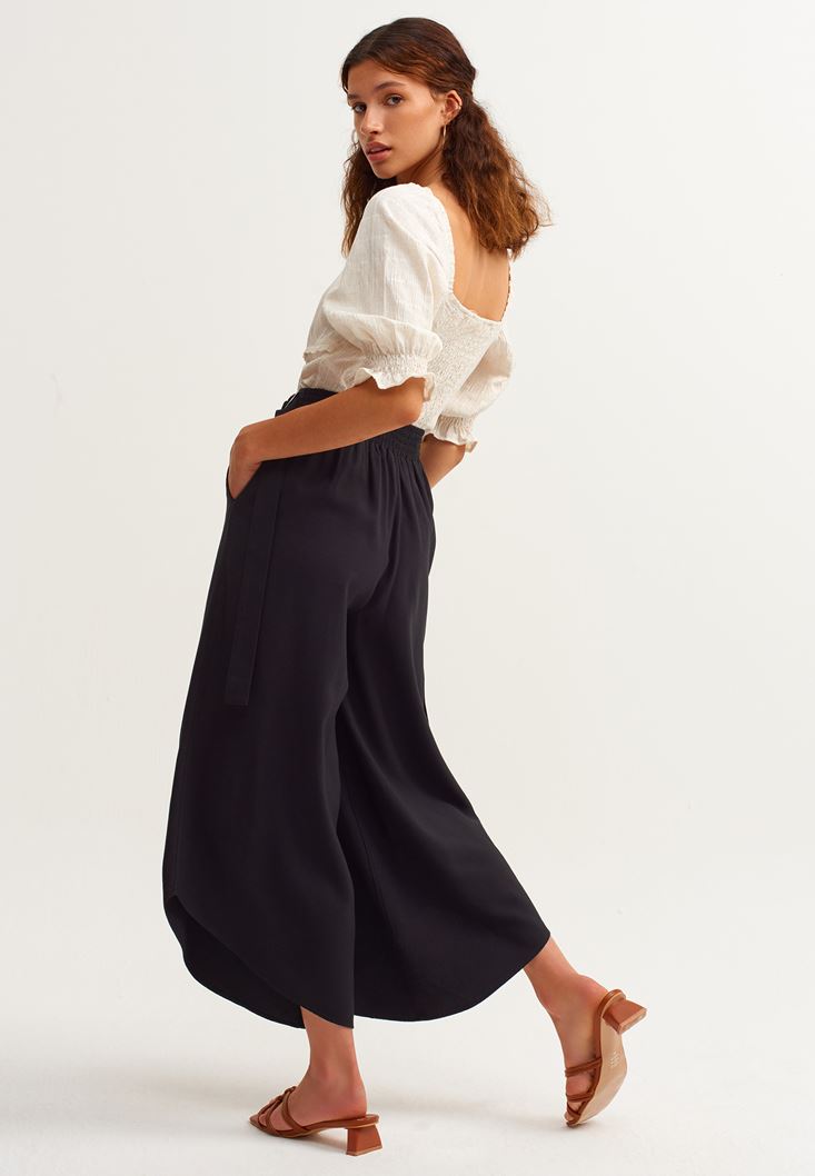 • Bayan Siyah Kuşaklı Culotte Pantolon