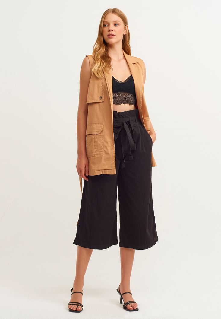 • Bayan Siyah Kuşaklı Culotte Pantolon