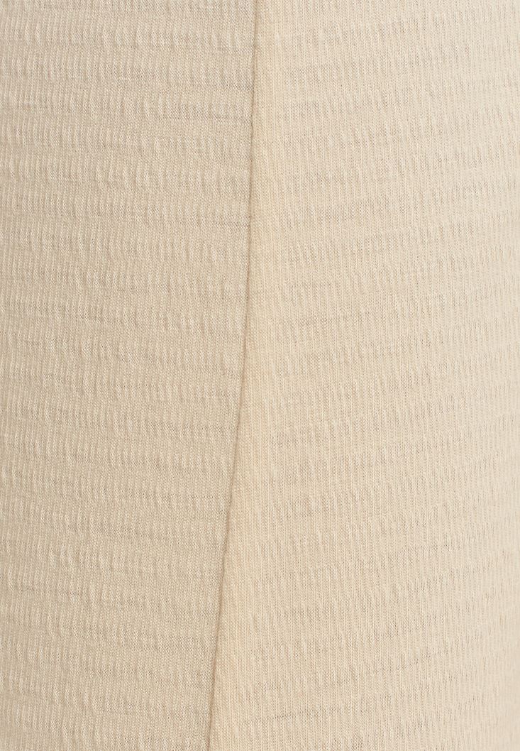 Viskon karışımlı özel doku, culotte formlu bol paça, yüksek bel, beli kuşaklı, paça kısmı volan detaylı.