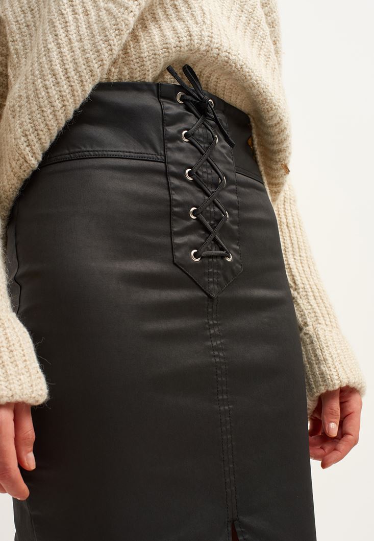 • Bayan Siyah Lace-Up Detaylı Midi Etek