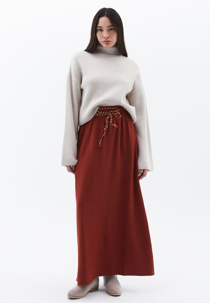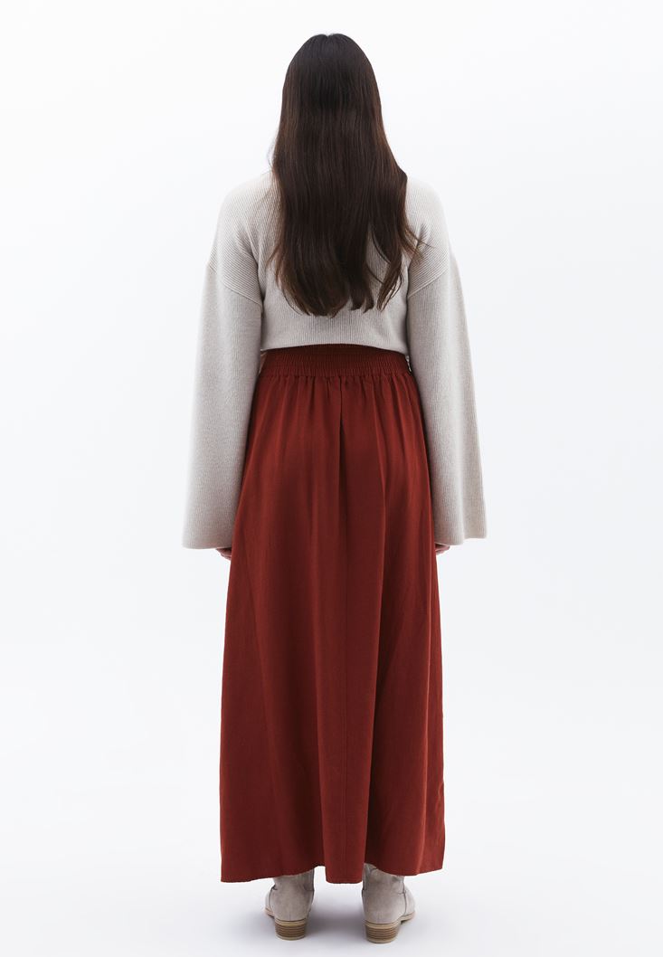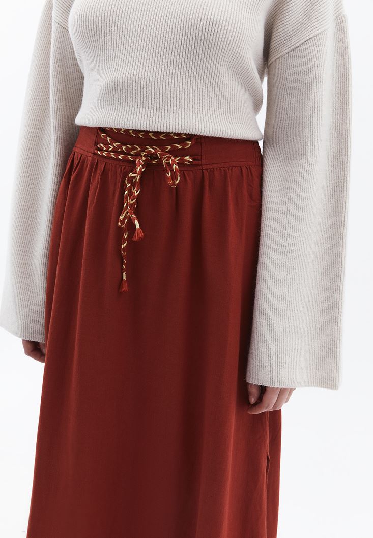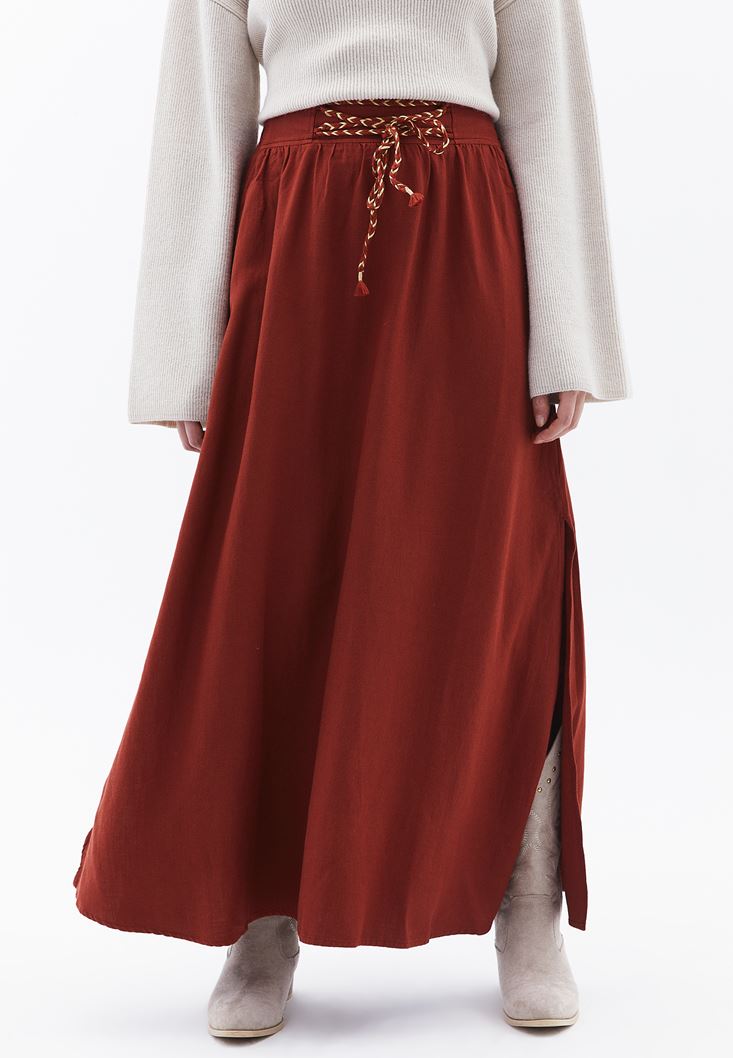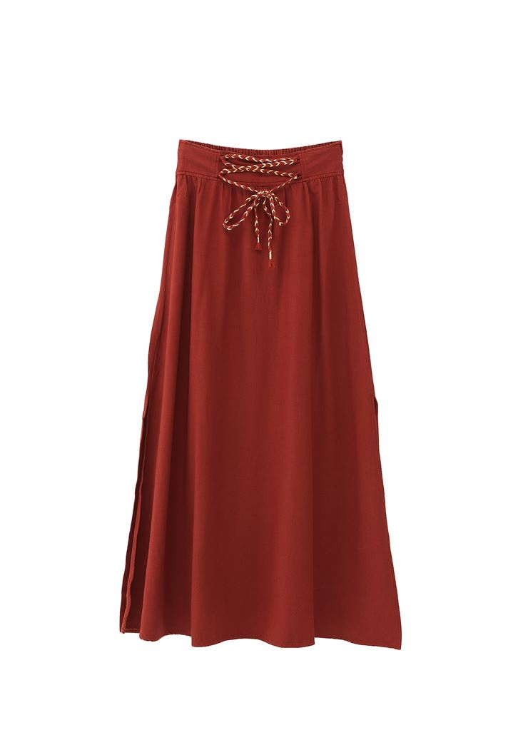 Kiremit Lace-Up Detaylı Yırtmaçlı Etek