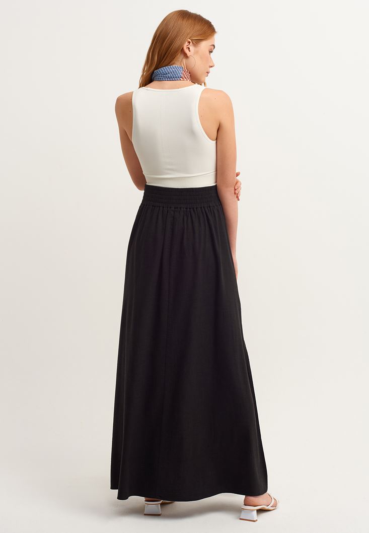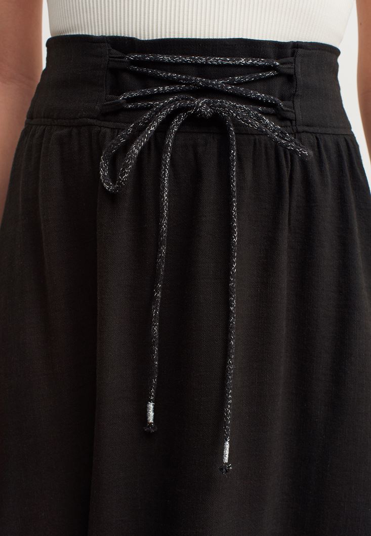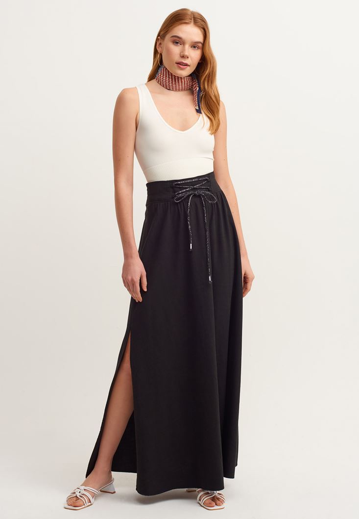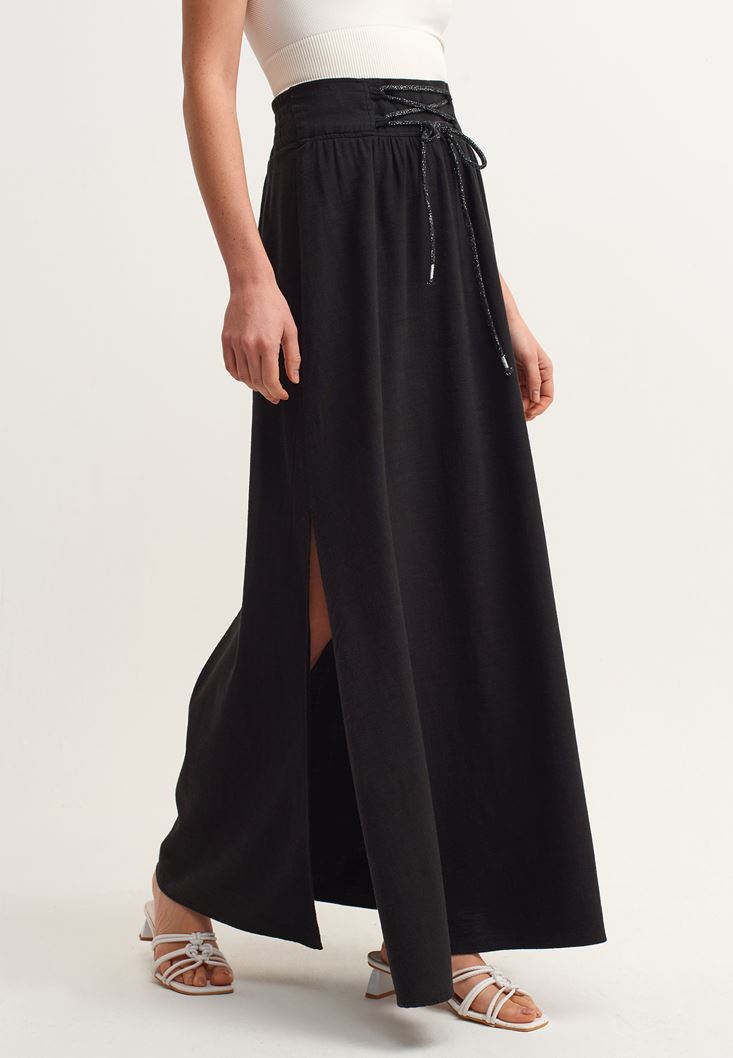 Siyah Lace-Up Detaylı Yırtmaçlı Etek