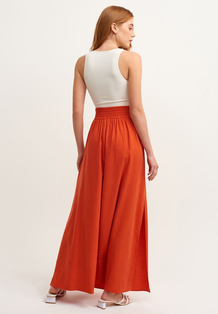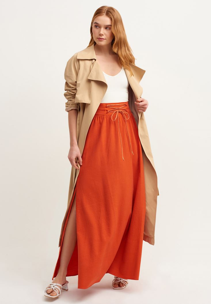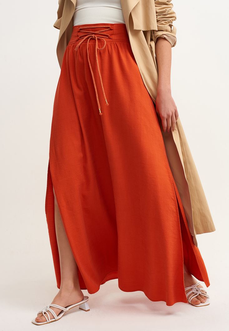 Kiremit Lace-Up Detaylı Yırtmaçlı Etek