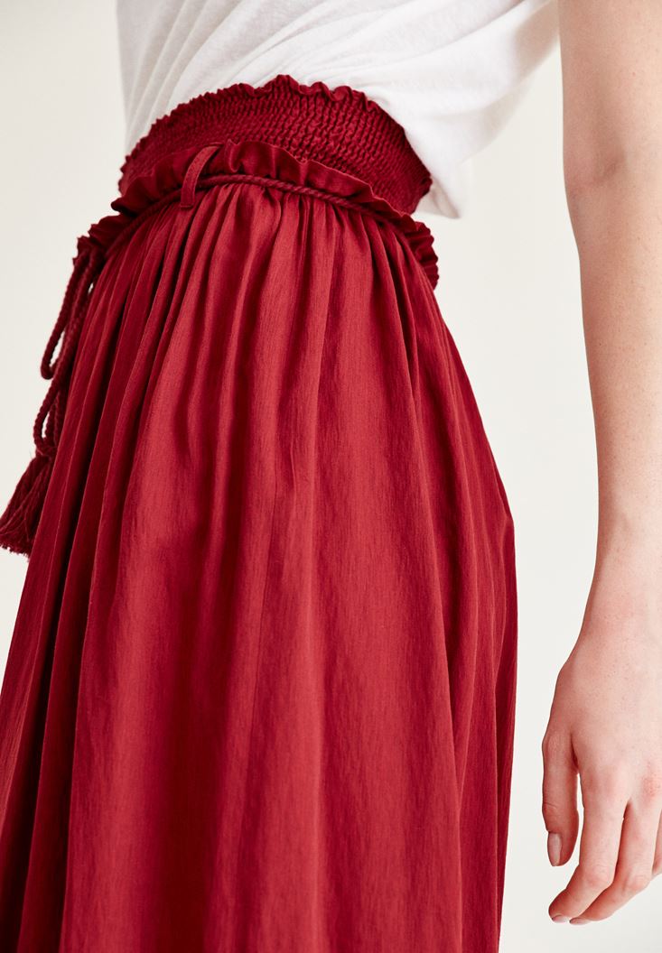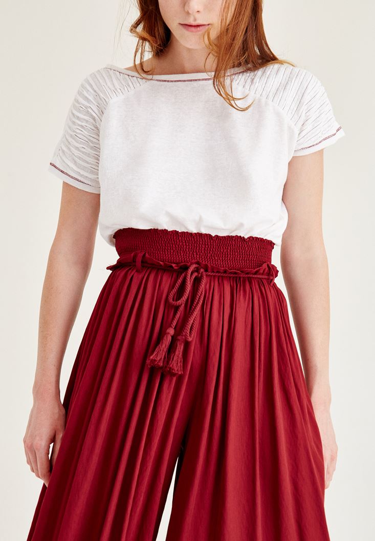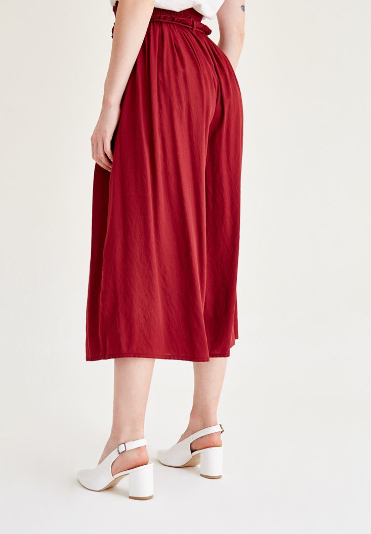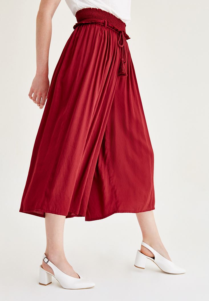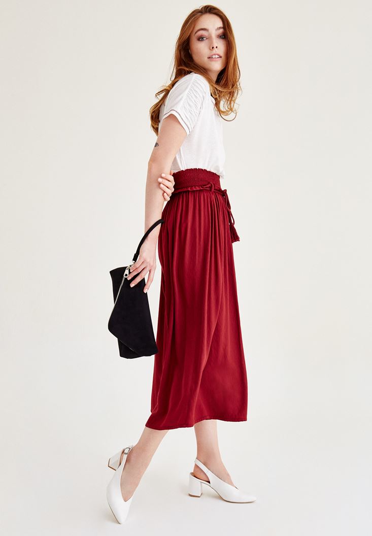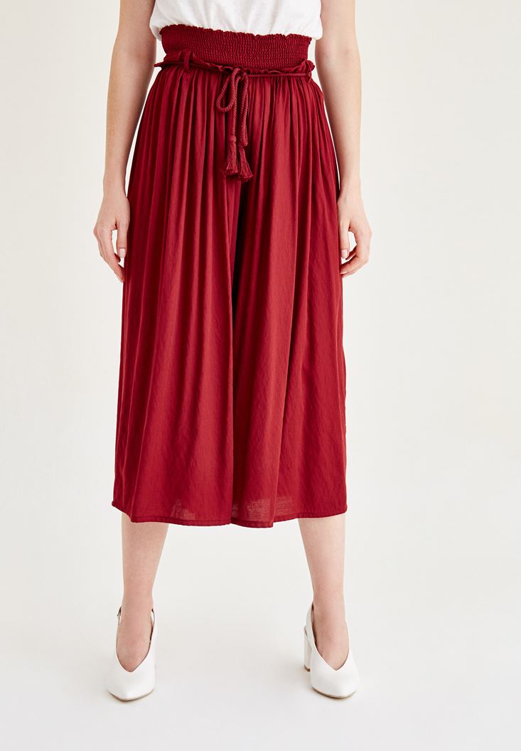• Bayan Bordo Lastik Detaylı Bol Pantolon