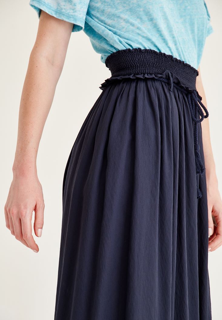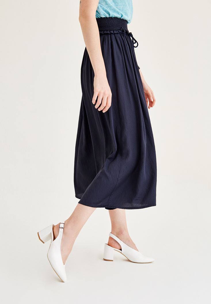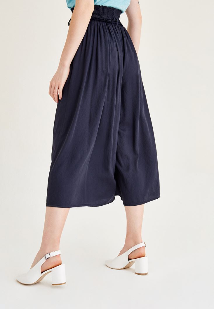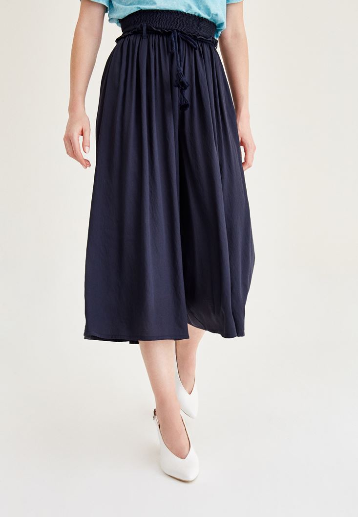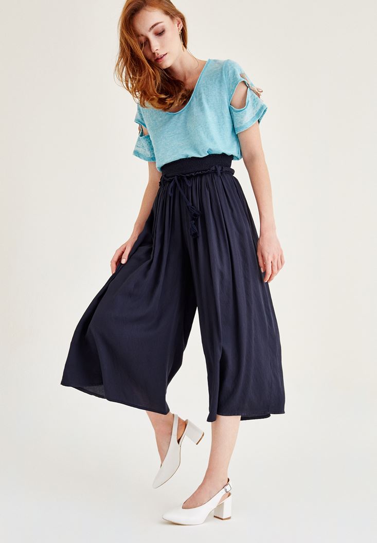 • Bayan Lacivert Lastik Detaylı Bol Pantolon