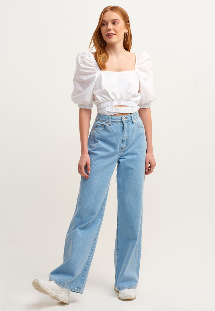 Beyaz Lastik Detaylı Crop Top