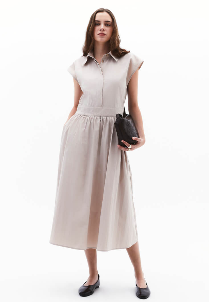 Lastikli Midi Elbise ve Babet Kombini
