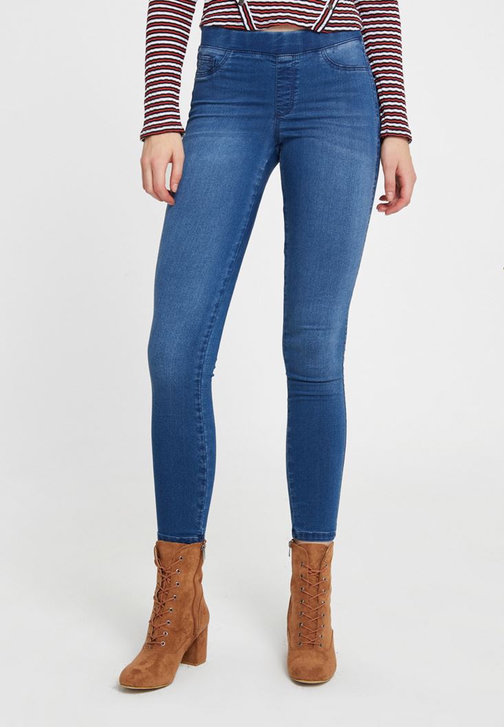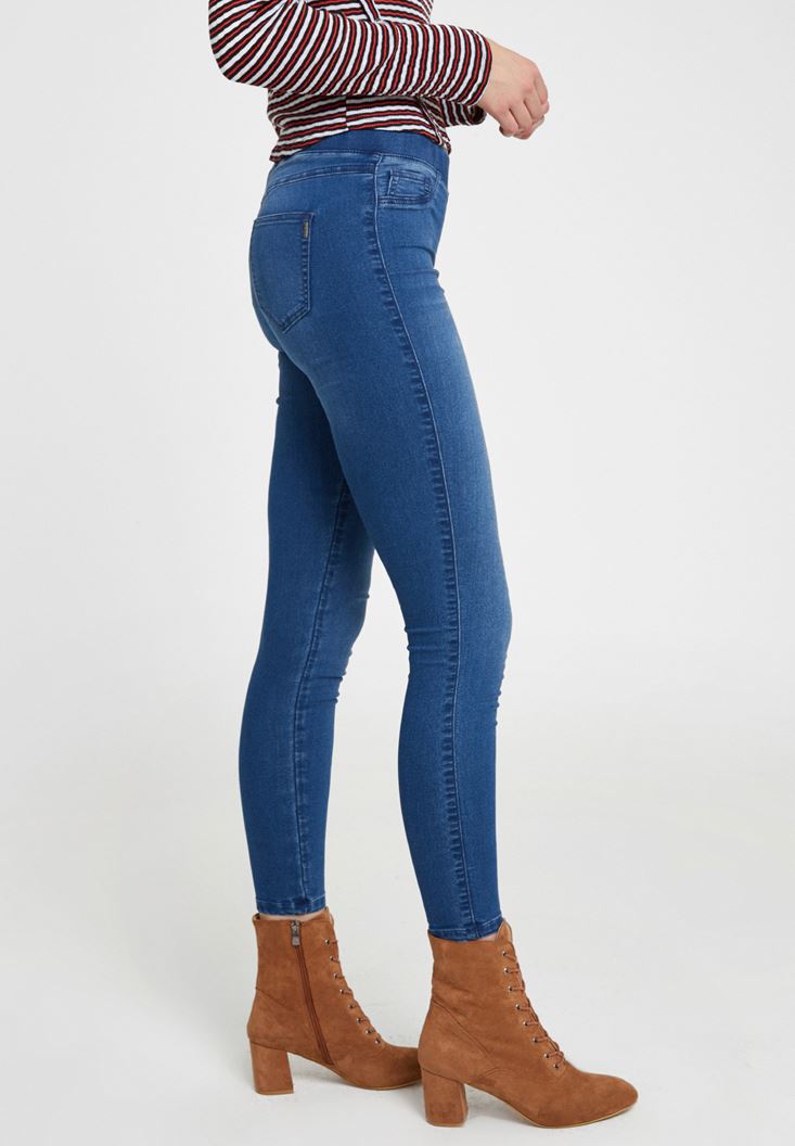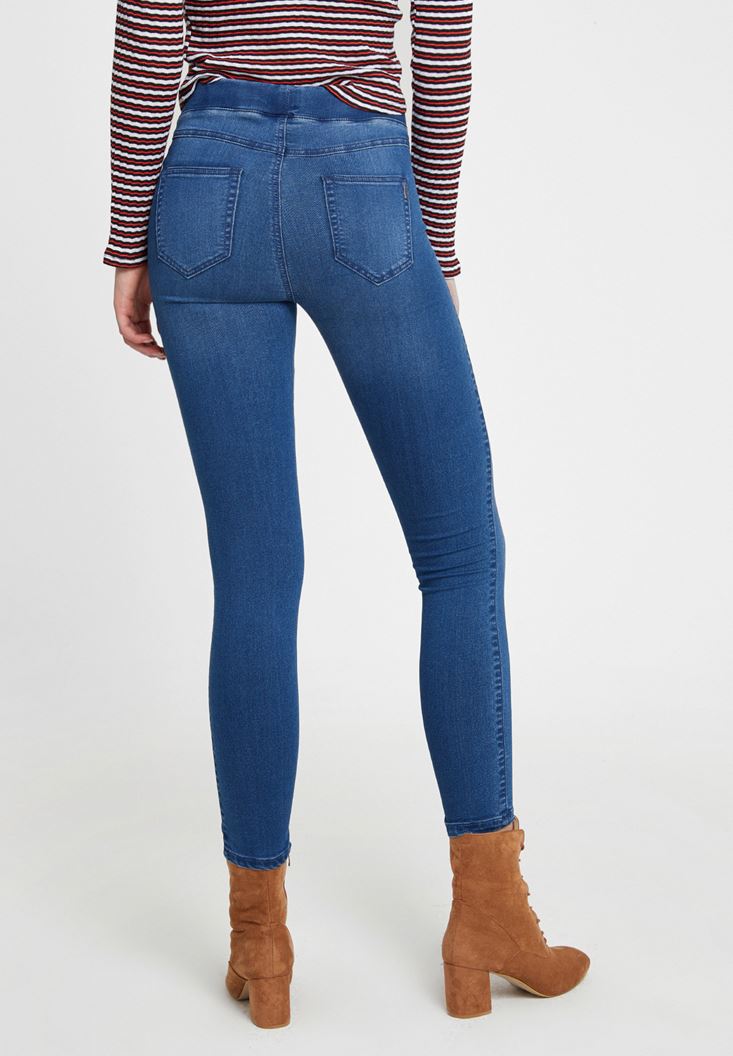 • Bayan Mavi Lastikli Orta Bel Tayt Pantolon