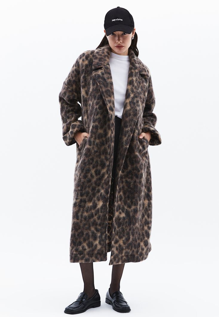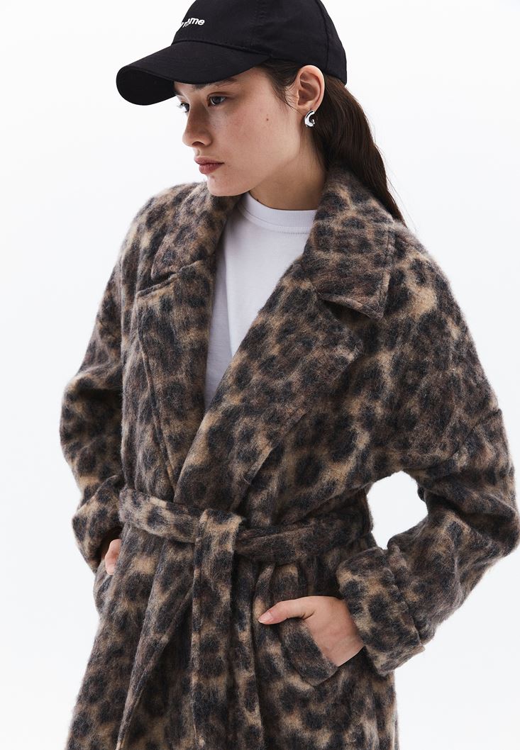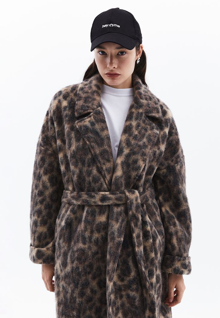 Oxxo Leopar Desenli Yün Karışımlı Kaban 2183491398