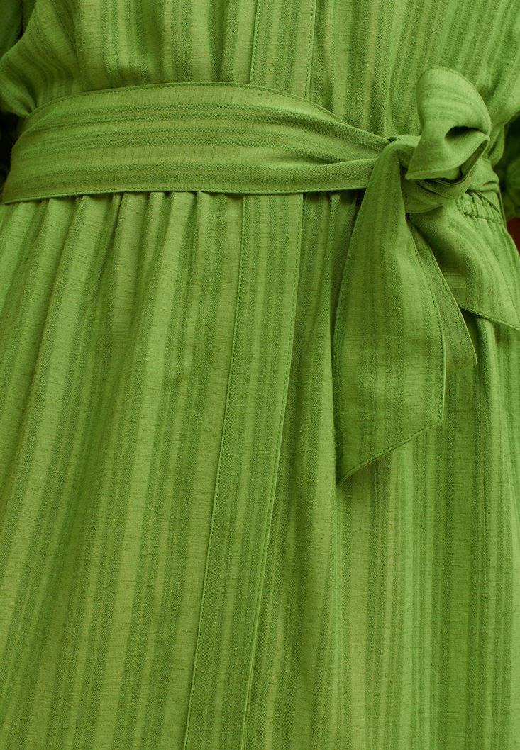 • Bayan Yeşil Linen Blend Balon Kollu Midi Elbise