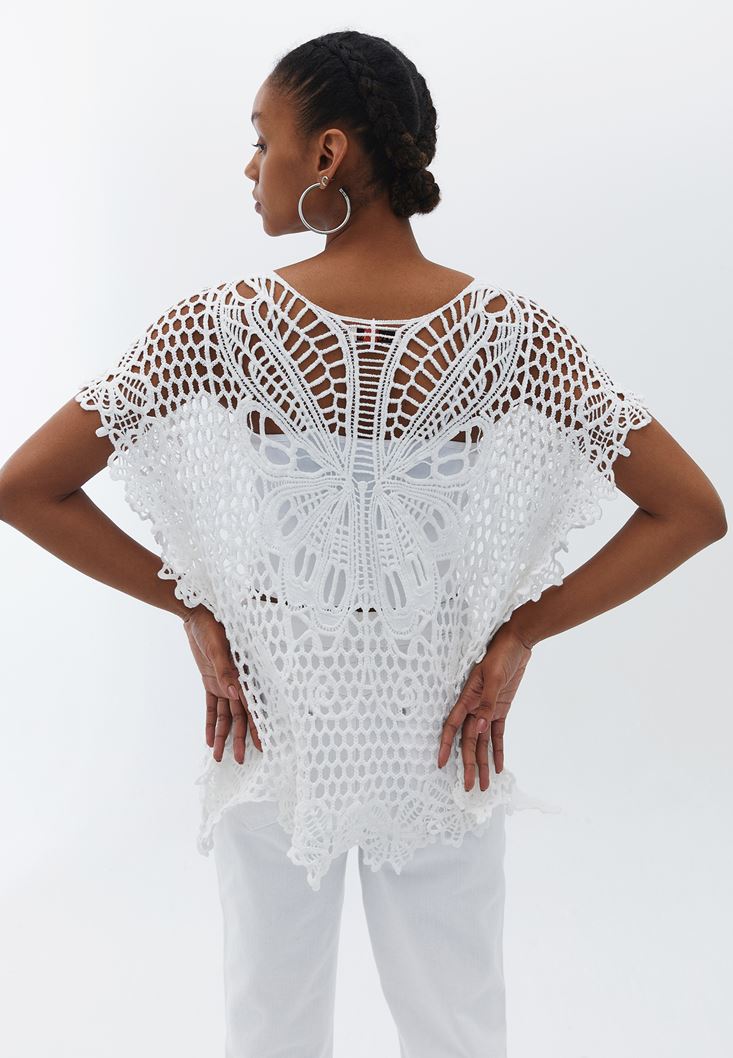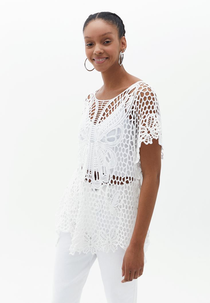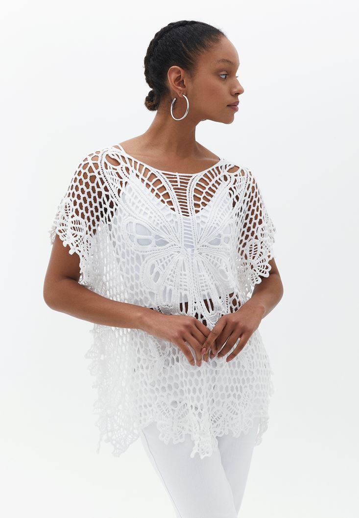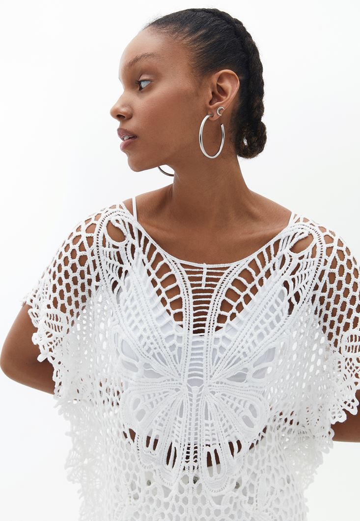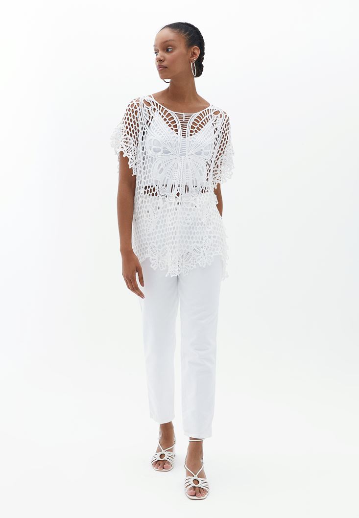 • Bayan Beyaz Loose-Fit Ajurlu Bluz