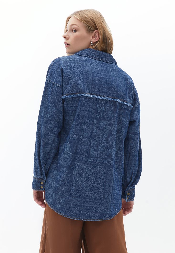 Mavi Loose-Fit Baskılı Denim Gömlek