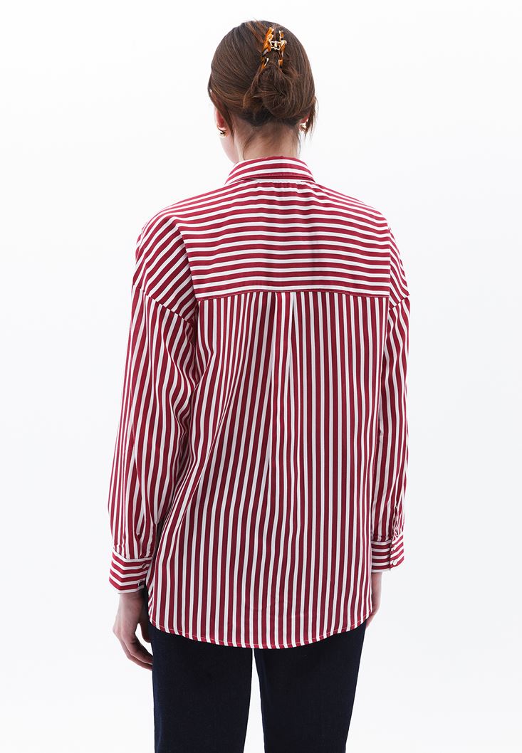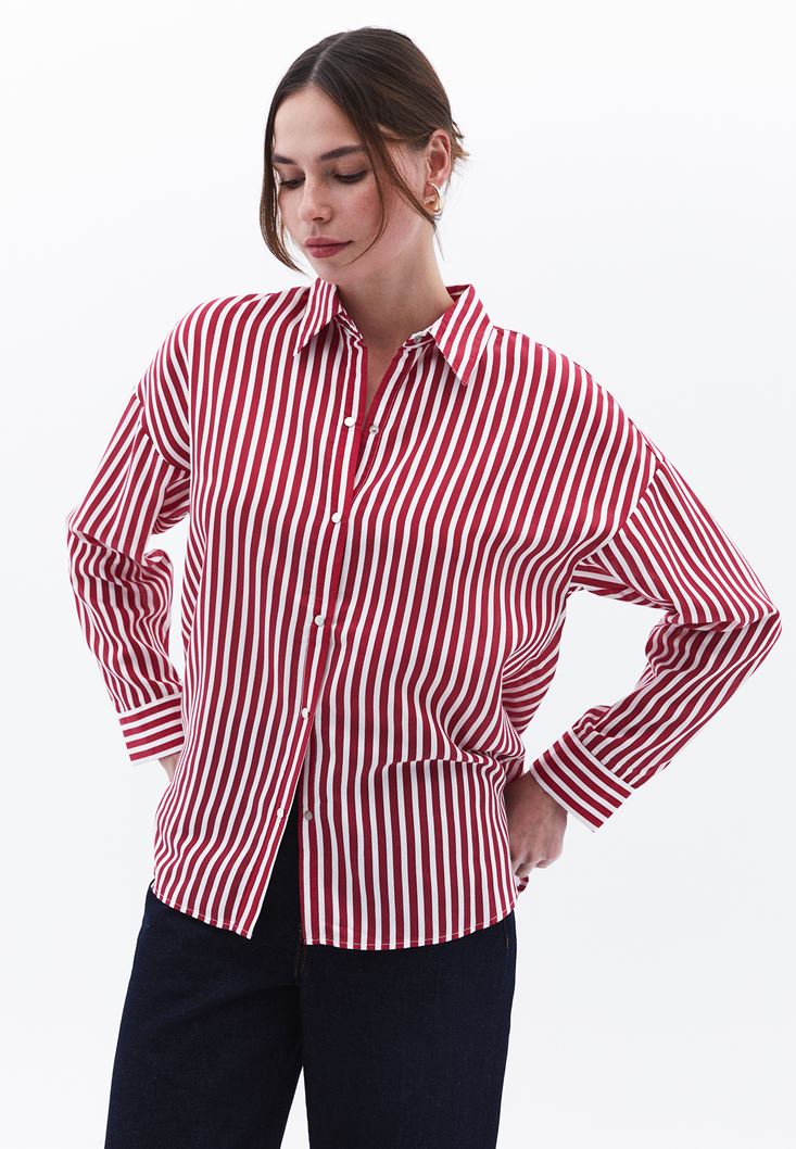 • Bayan Çok Renkli Loose-Fit Çizgili Gömlek