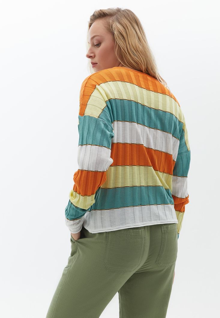 • Bayan Çok Renkli Loose-Fit Çizgili Kazak