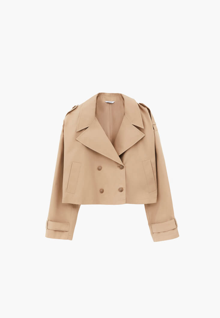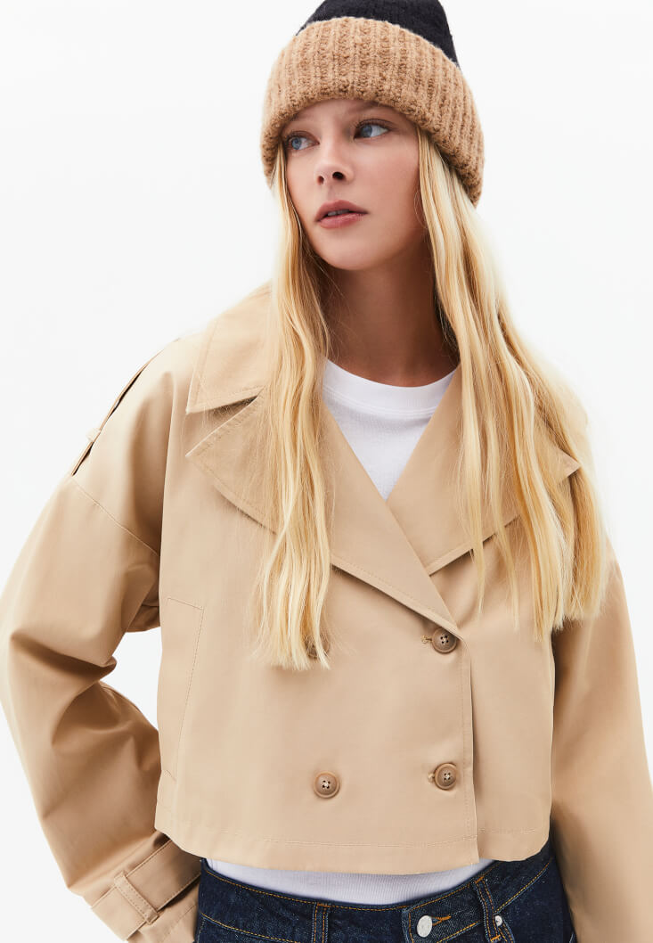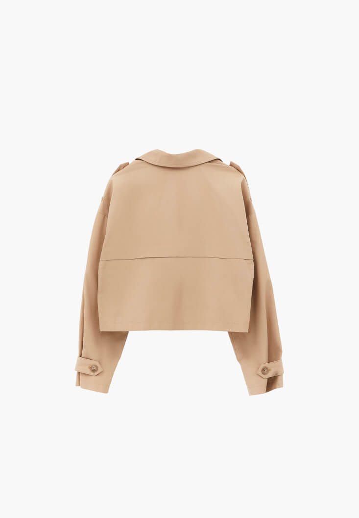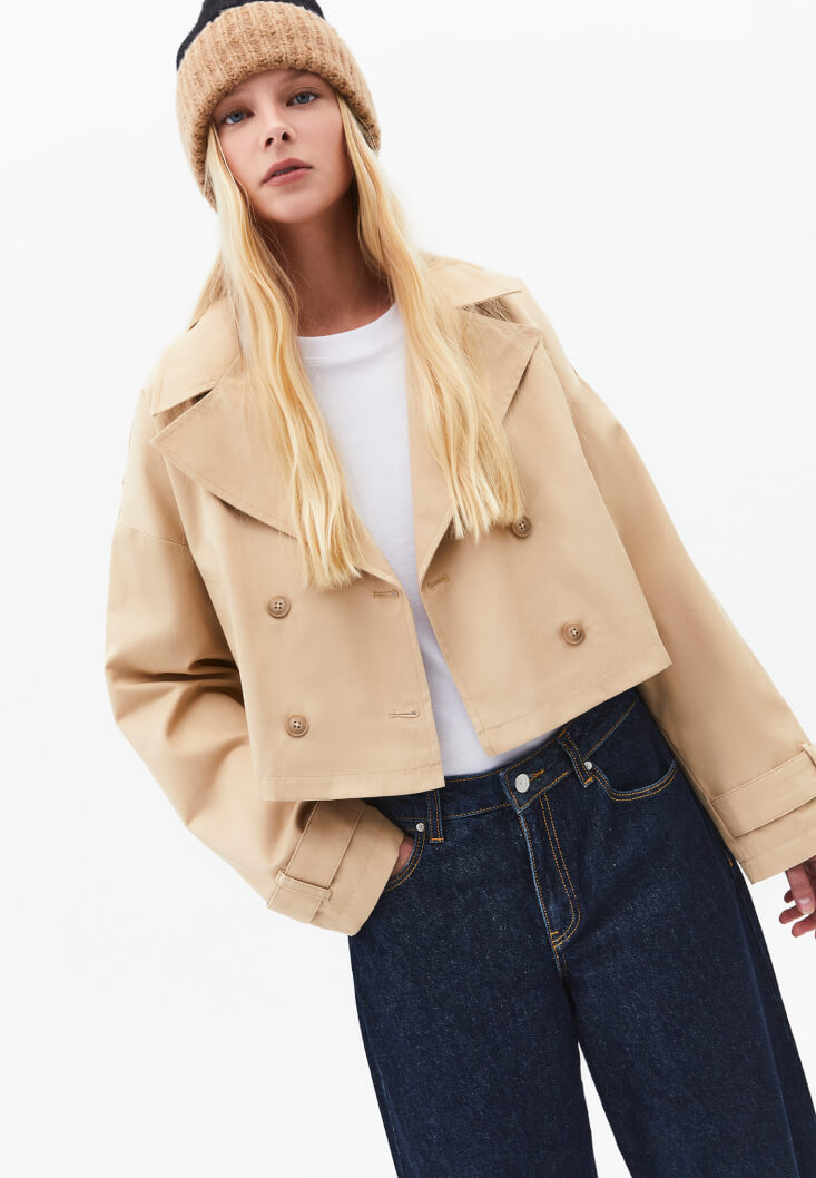 • Bayan Bej Loose-Fit Crop Trençkot