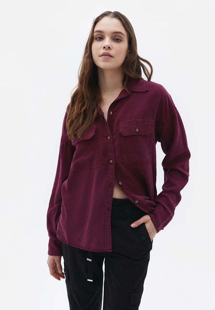 Bordo Loose-Fit Gömlek ( TENCEL™ )