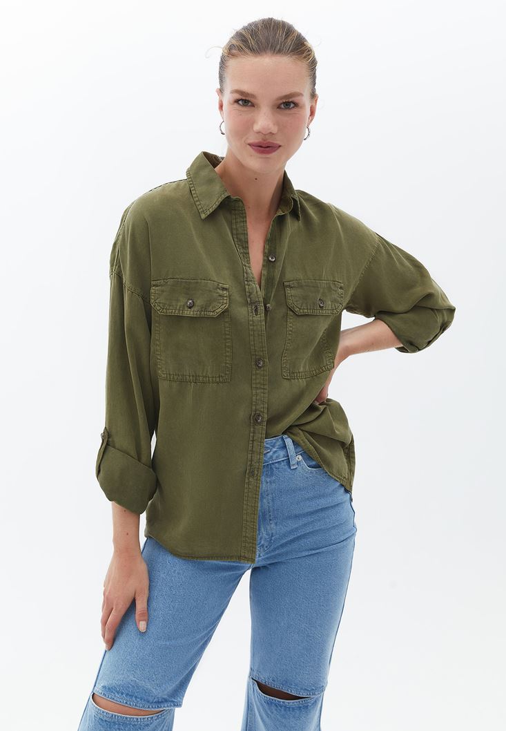 • Bayan Yeşil Loose-Fit Gömlek ( TENCEL™ )