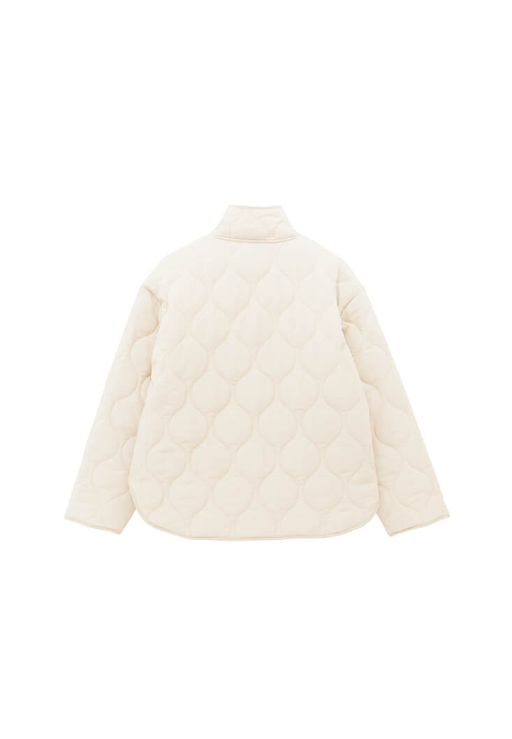 Puf dolgulu kapitoneli tasarım, bedenden uzak loose fit, uzun kollu, önü kısa arkası uzun asimetrik kesim, yüksek yaka, fermuar kapamalı, iki cepli.