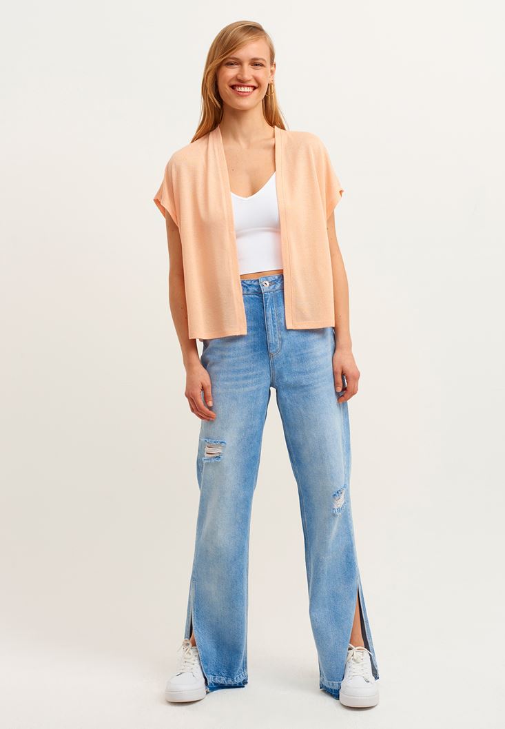 Turuncu Loose-Fit Kısa Kollu Hırka