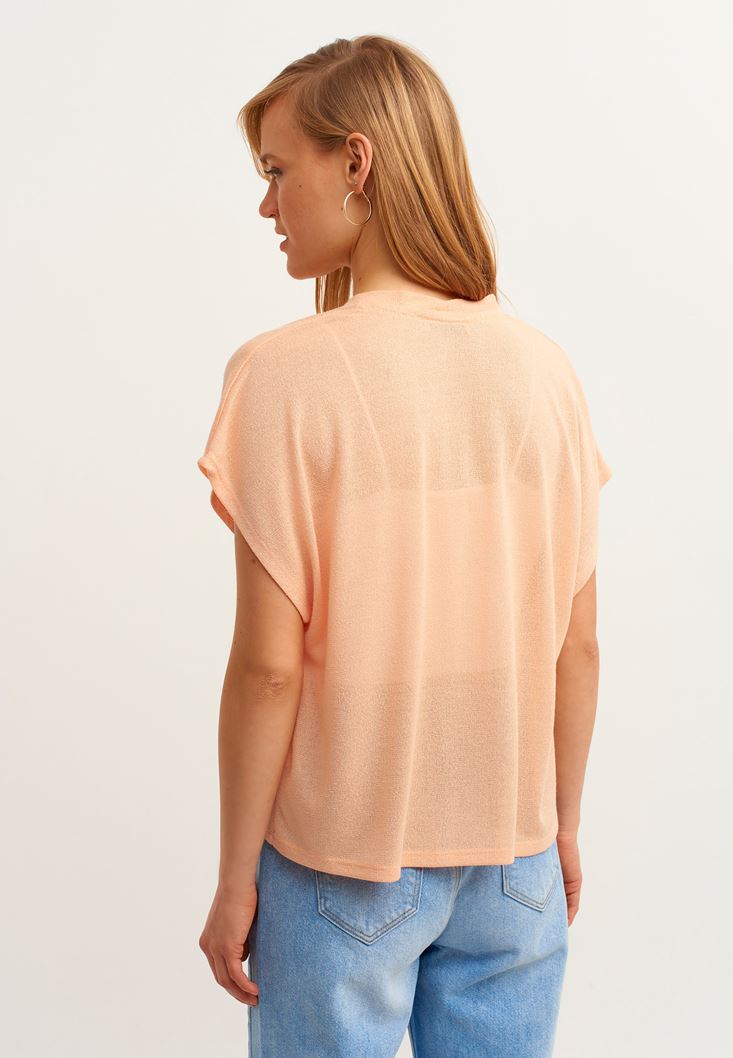 • Bayan Turuncu Loose-Fit Kısa Kollu Hırka