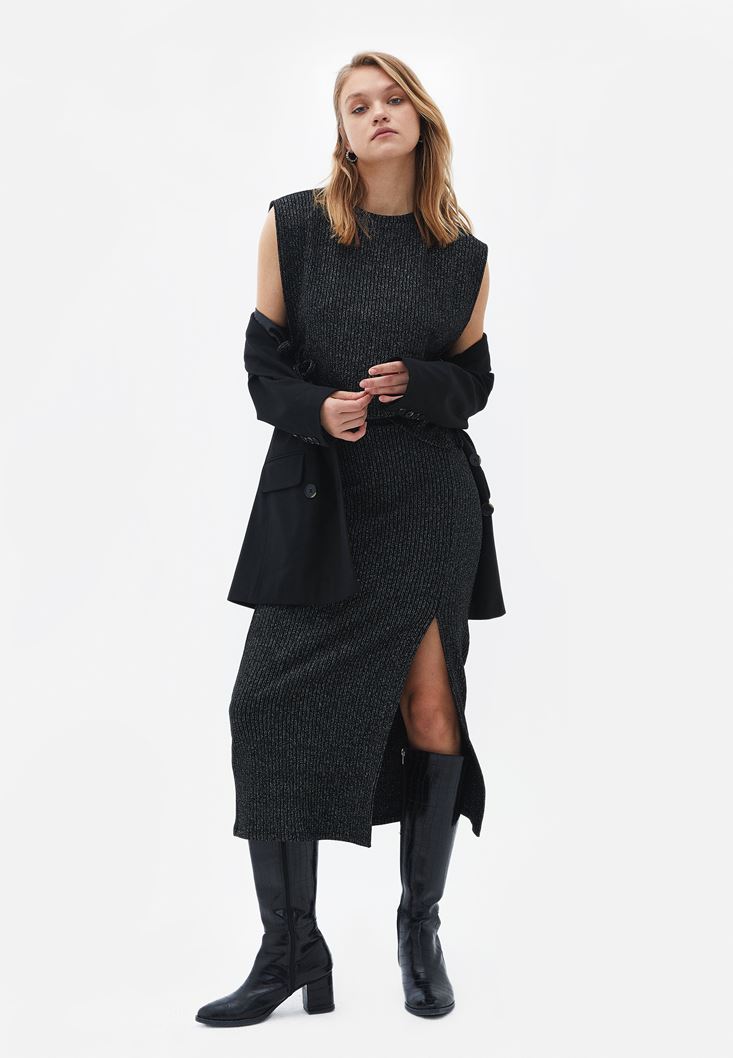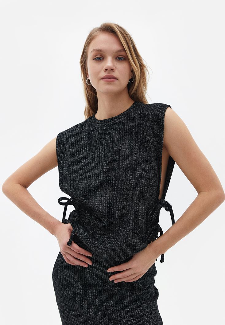 • Bayan Siyah Loose-Fit Kolsuz Süveter